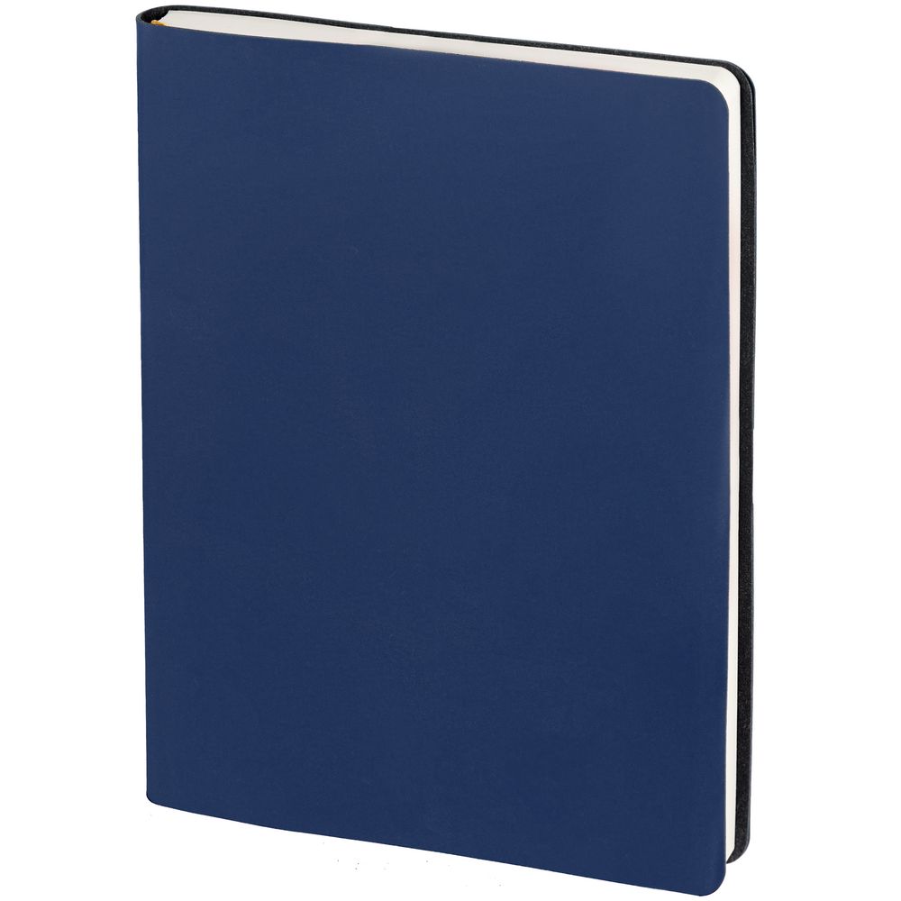 Ежедневник с гибкой обложкой, выполнен из материала Soft Touch, синий НН.Блок 207, датирован на 2026 год, с информационным блоком: