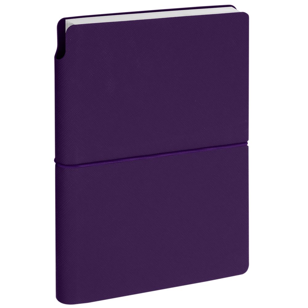 Ежедневник с гибкой обложкой выполнена из материала Nice Touch, фиолетовый и Latte, фиолетовыйl (внутренняя часть обложки), дополнен горизонтальной резинкой в цвет обложки. Внутри корешка — специальное место для крепления ручки размером до 15х1 см.
