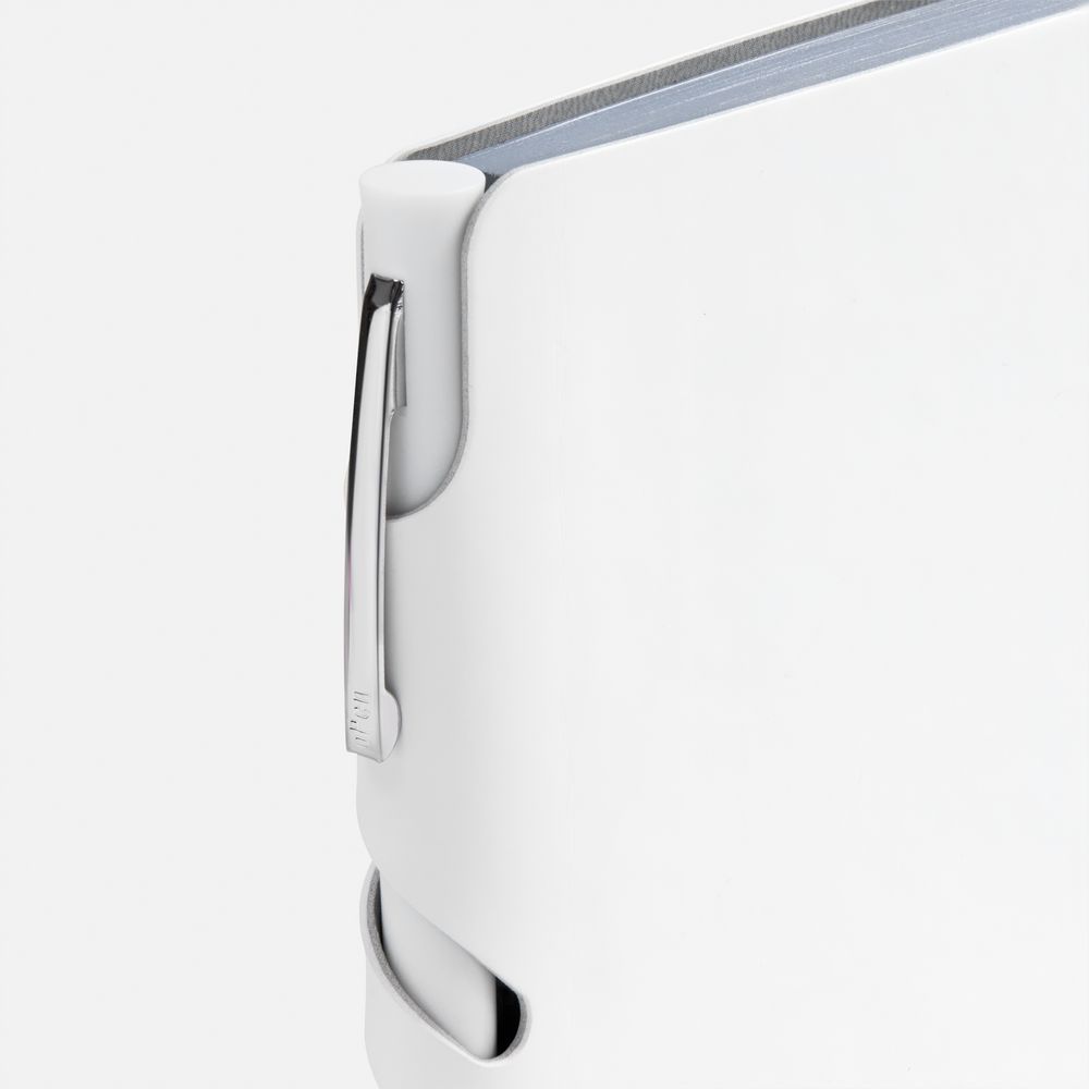 С ежедневником Flexpen Mini ручка всегда будет под рукой — ее удобно закрепить внутри корешка.Ежедневник с гибкой обложкой выполнен из материала Soft Touch, белый BB и серого Latte (внутренняя часть обложки).