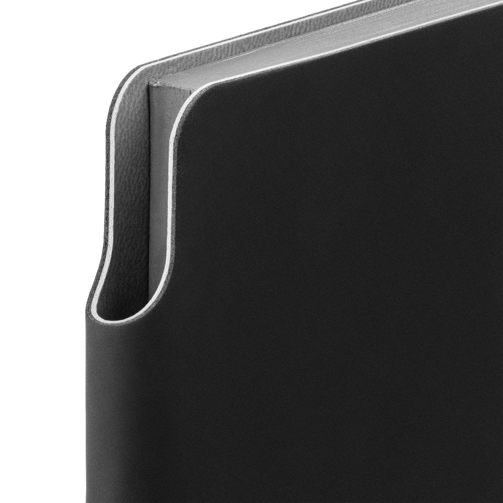 Ежедневник с гибкой обложкой выполнен из материала Soft Touch Pearl, черный АА и серого Latte (внутренняя часть обложки).