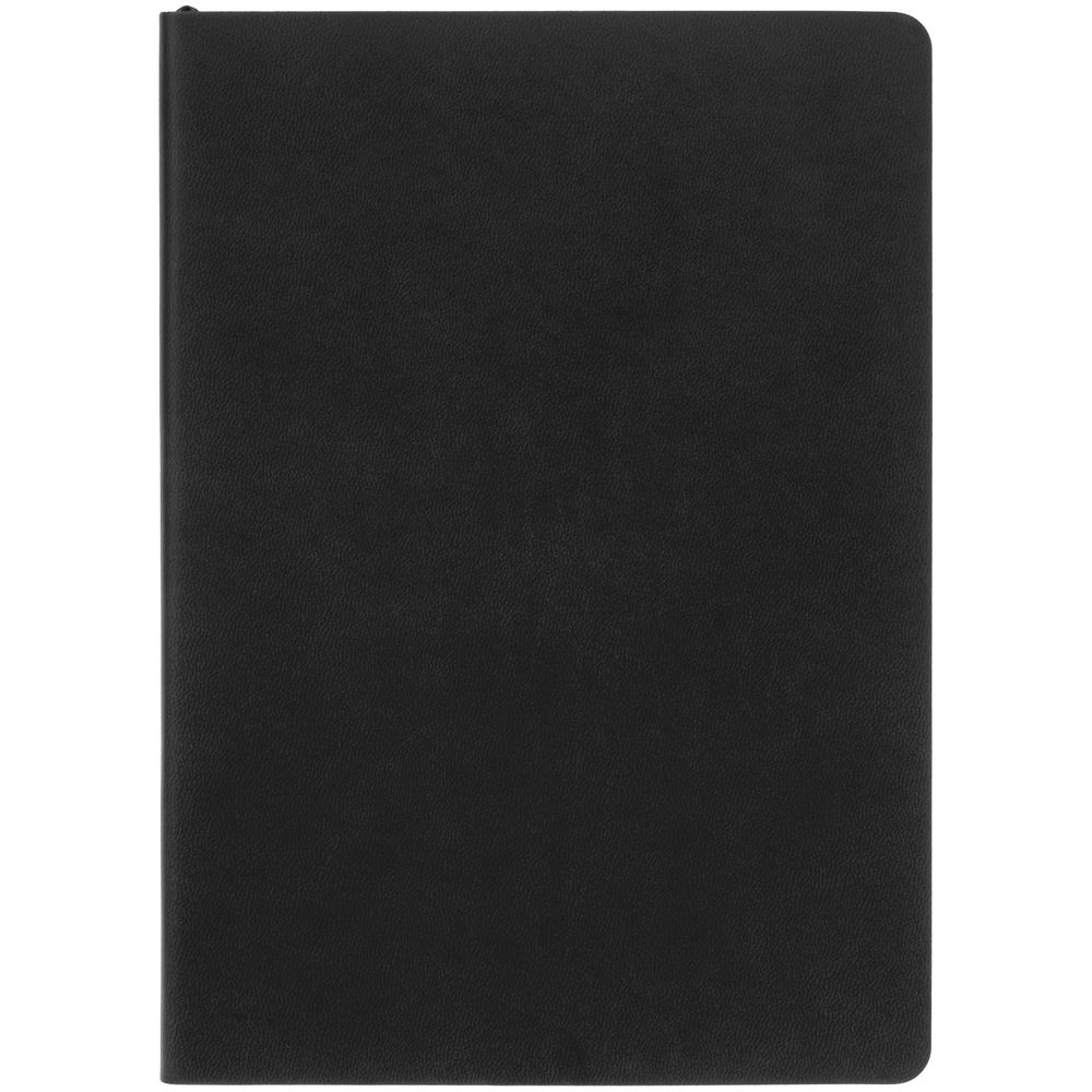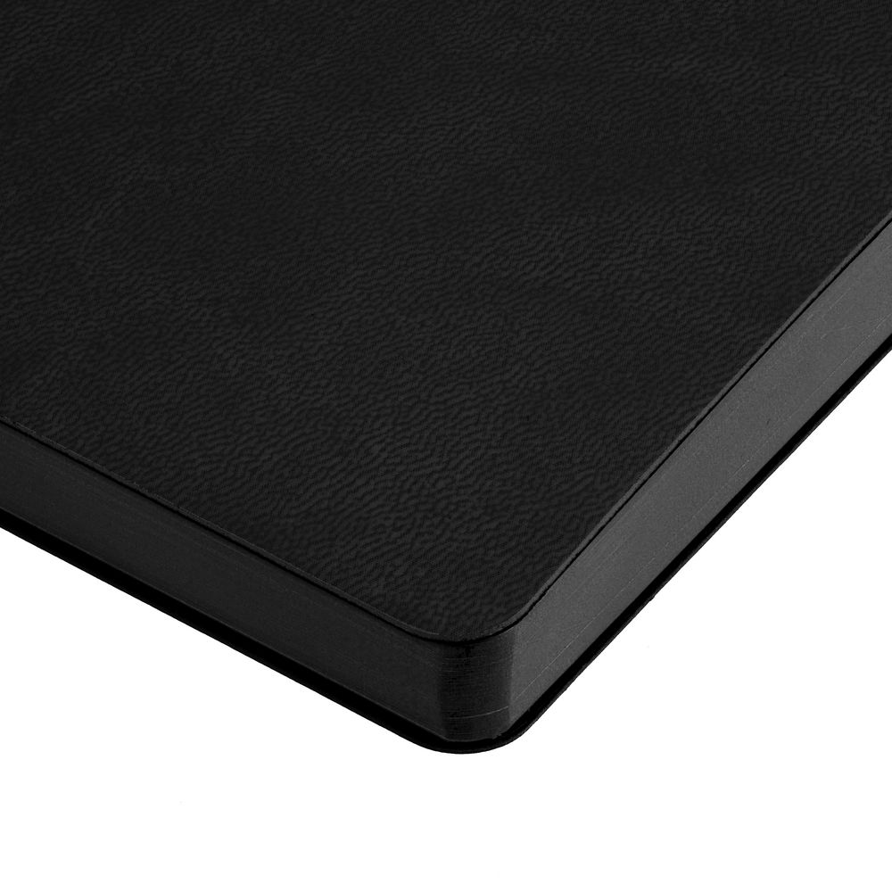 Ежедневник с гибкой обложкой, выполнен из материала Latte, черный, дополнен ляссе в цвет обложки.