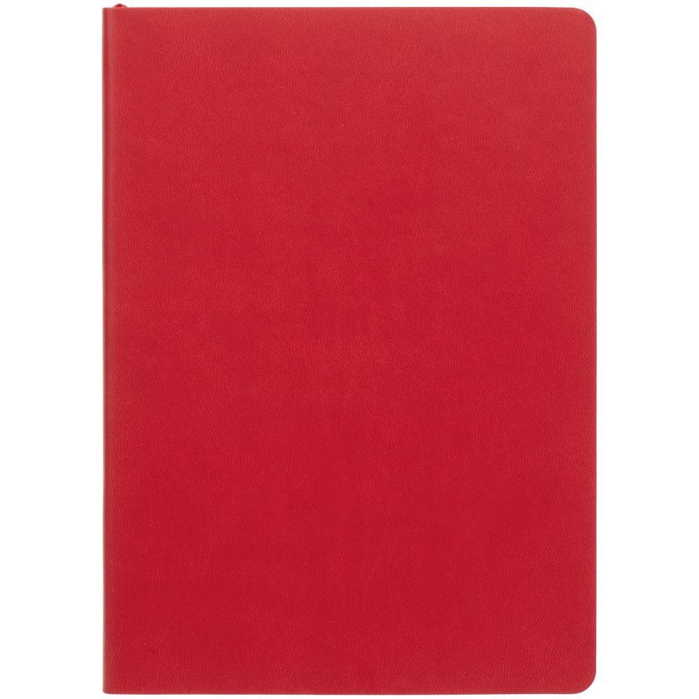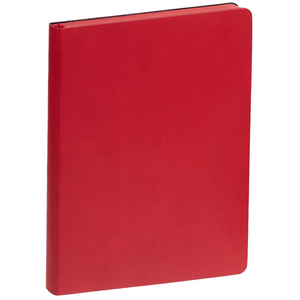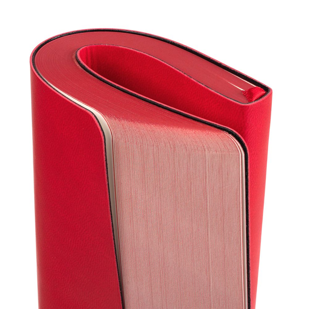 Ежедневник с гибкой обложкой, выполнен из материала Latte, красный, дополнен ляссе в цвет обложки.