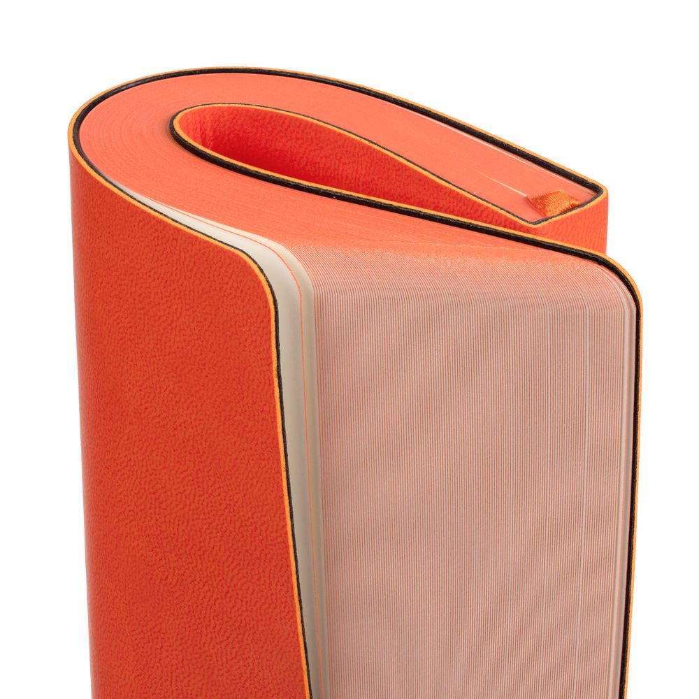 Ежедневник с гибкой обложкой, выполнен из материала Latte, оранжевый, дополнен ляссе в цвет обложки.