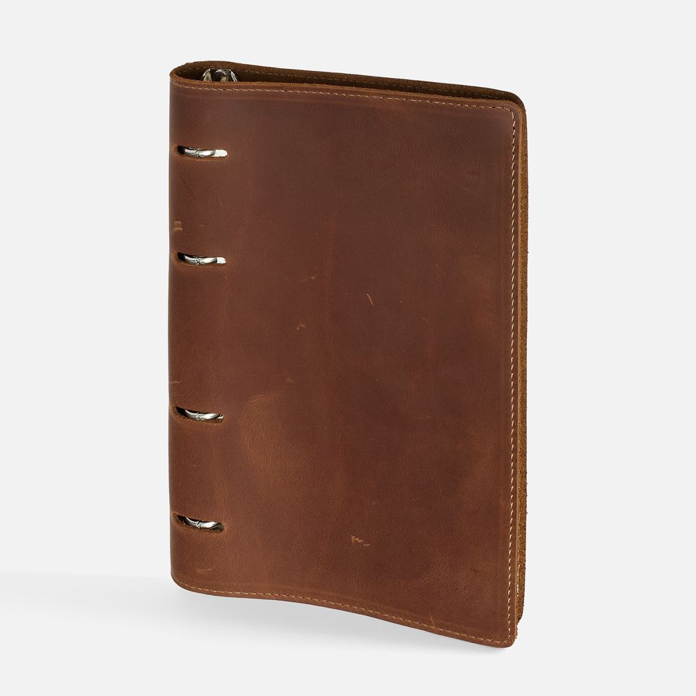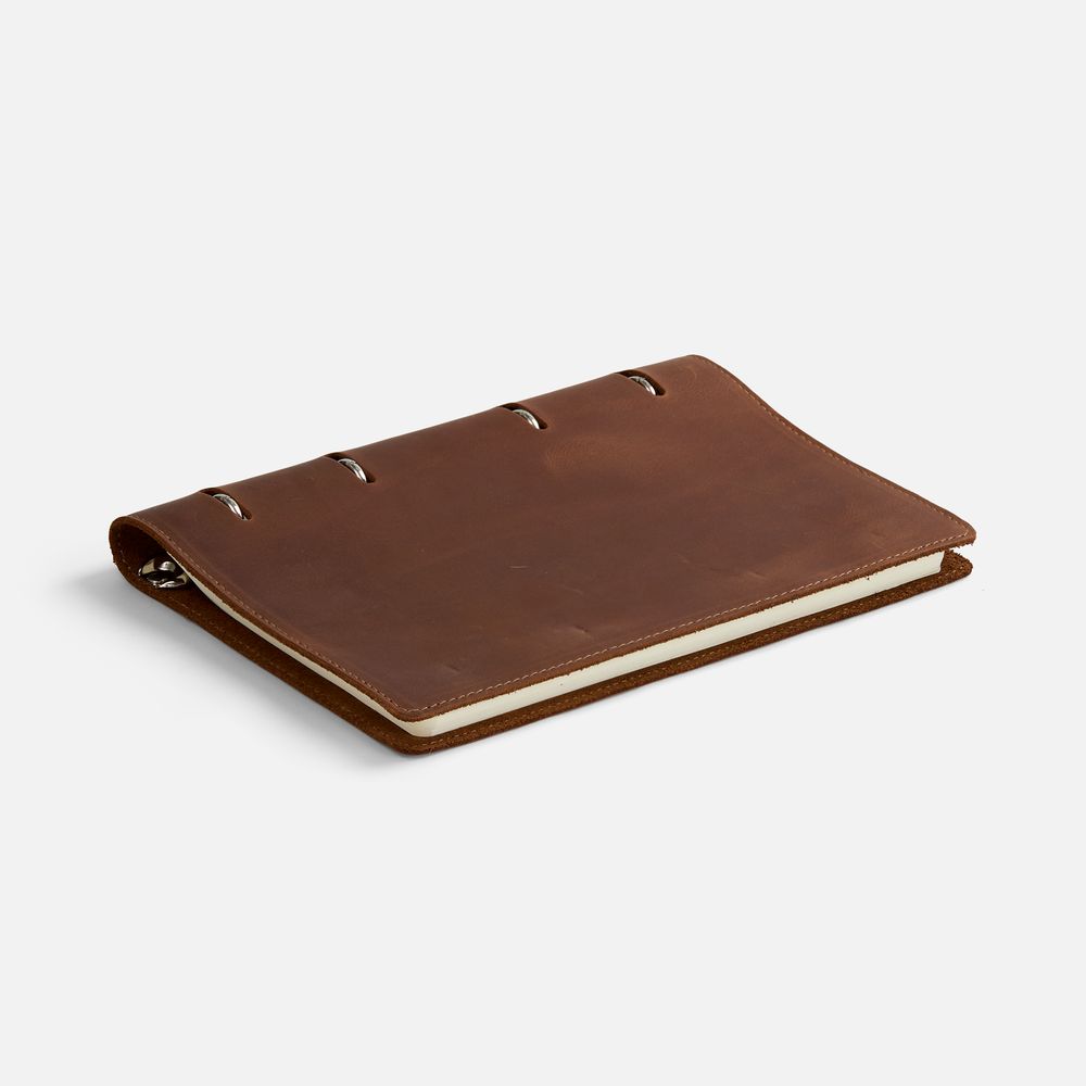 Ежедневник со съемным блоком на кольцах, выполнен из натуральной кожи.