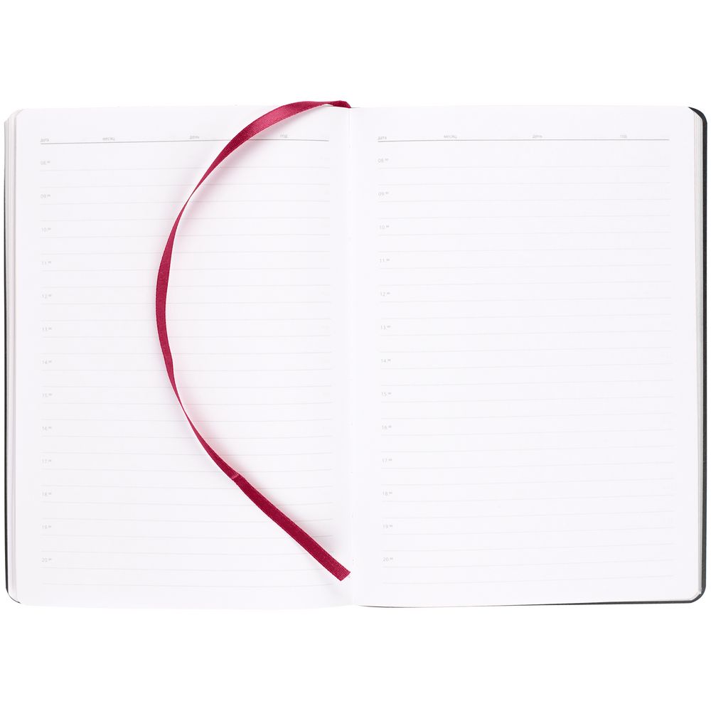 Ежедневник с гибкой обложкой, выполнен из материала Nebraska, винный SS, дополнен ляссе бордового цвета.