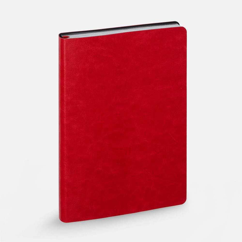 Ежедневник с гибкой обложкой, выполнен из материала Nebraska, красный PP, дополнен ляссе красного цвета.
