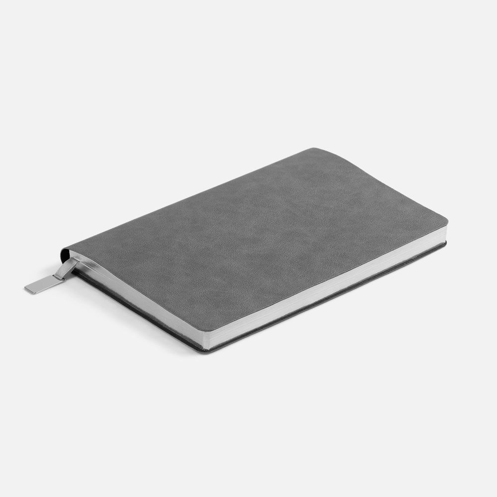 Ежедневник с гибкой обложкой, выполнен из материала Petrus, черный АА, дополнен серым ляссе с металлическим шильдиком.