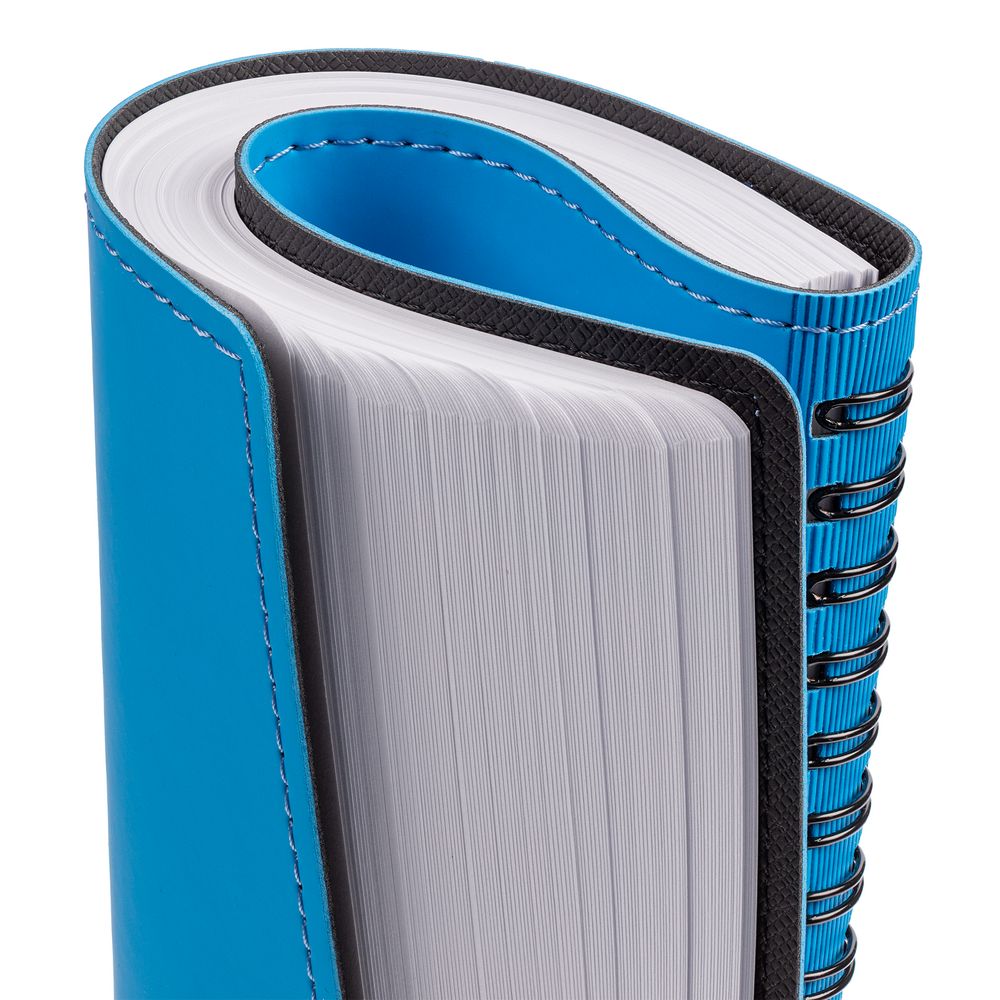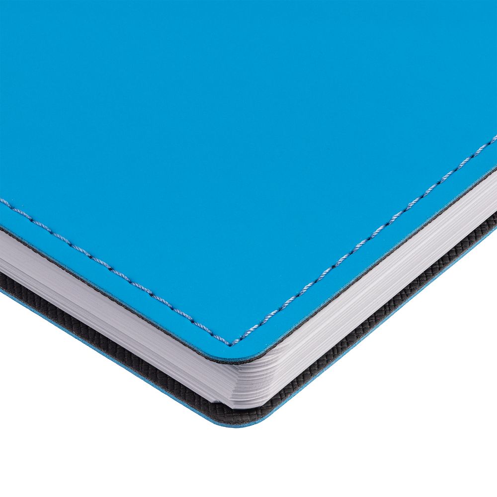 Ежедневник с гибкой обложкой, выполнен из материалов Soft Touch Ultra, голубой JJ и Nice touch, черный АА.