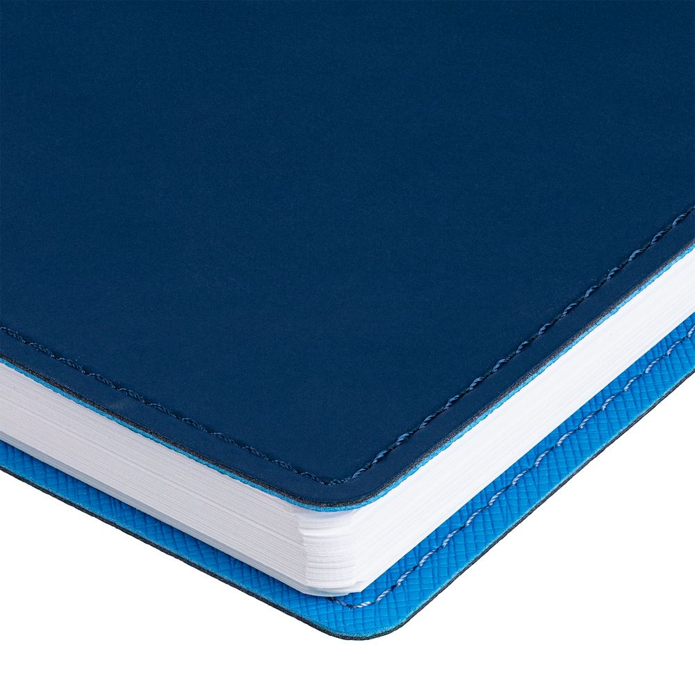 Ежедневник с гибкой обложкой, выполнен из материалов Soft Touch, синий и Nice Touch, голубой.
