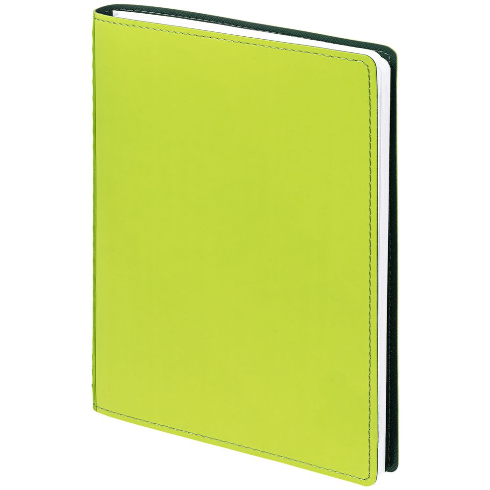 Ежедневник с гибкой обложкой, выполнен из материалов Soft Touch, светло-зеленый YY и Nice Touch, зеленый FF.