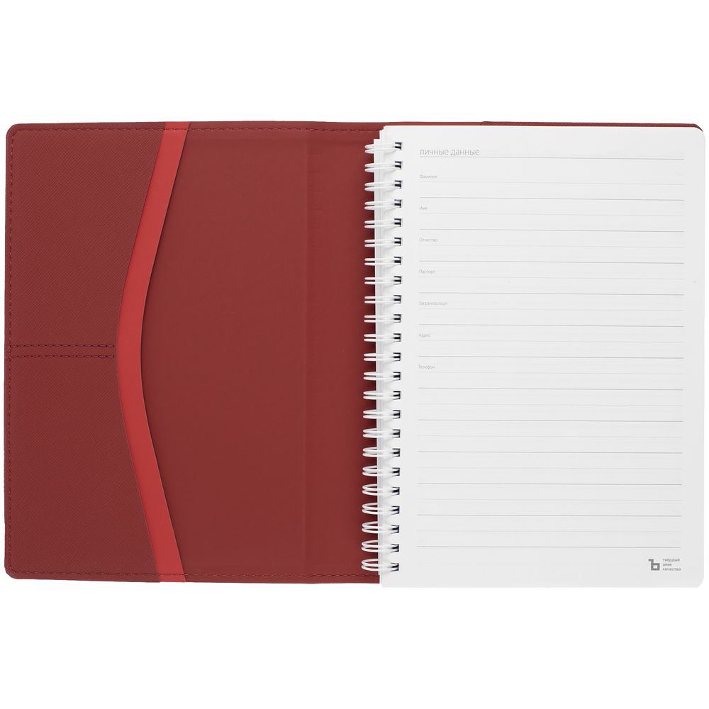 Твердая обложка с кармашками и съемный блок на пружине — для тех, кто ценит удобство и практичность.Ежедневник с блоком на пружине в твердой обложке, выполнен из материалов Nice Touch, Soft Touch и Soft Touch Ultra красный.