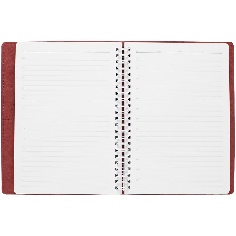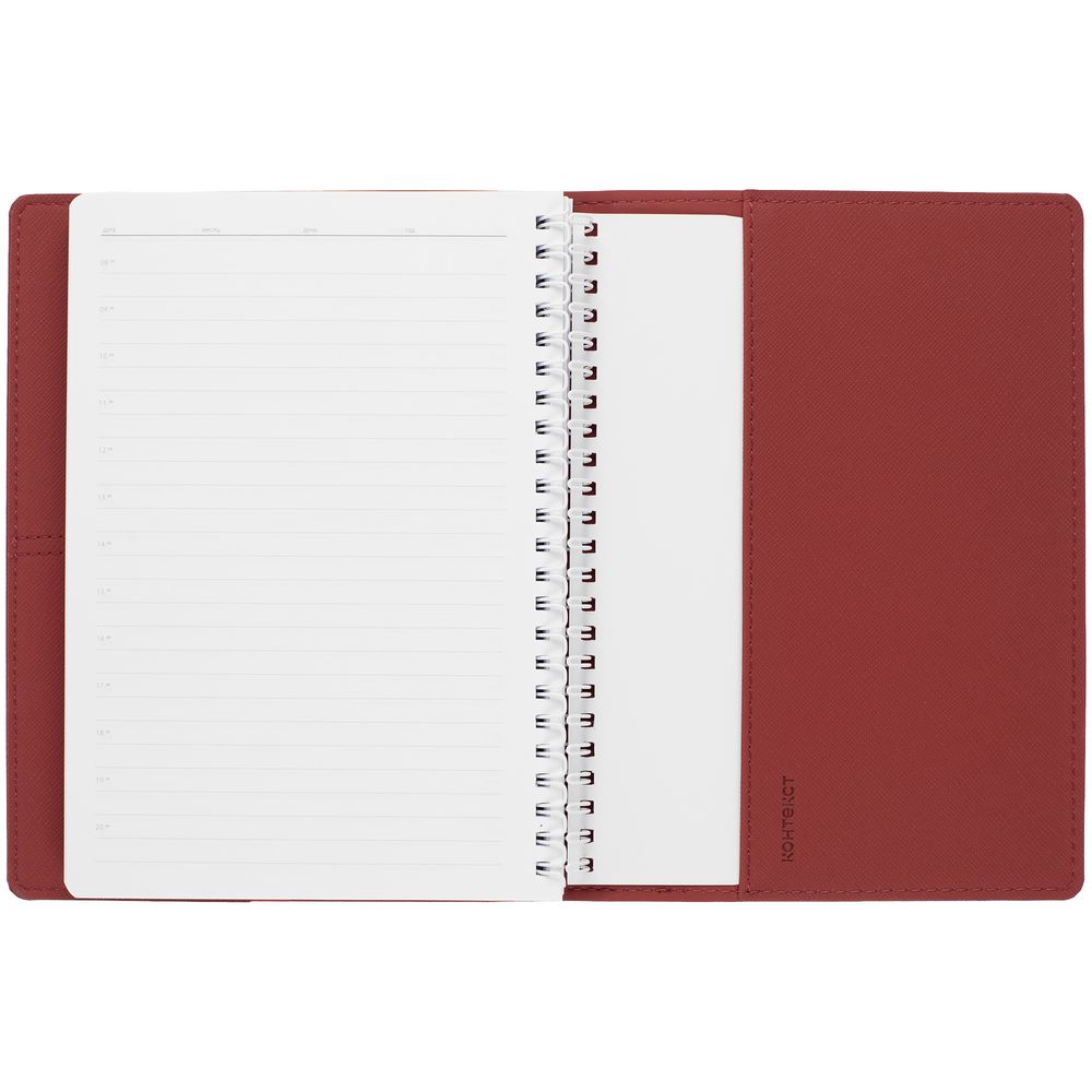 Ежедневник с блоком на пружине в твердой обложке, выполнен из материалов Nice Touch, Soft Touch и Soft Touch Ultra красный.