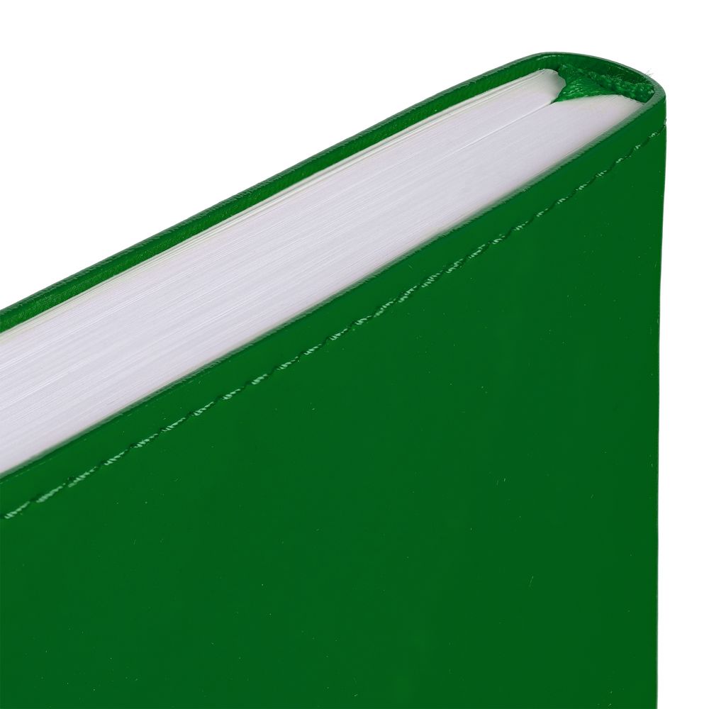 Ежедневник с гибкой обложкой из материала Soft Touch Ultra, зеленый FF и Latte, зеленый FF (внутренний материал), дополнен петелькой для ручки из покровного материала, капталом, ляссе и закрашенным срезом обложки в цвет материала.Блок 985, без календарной сетки и информационного блока:
