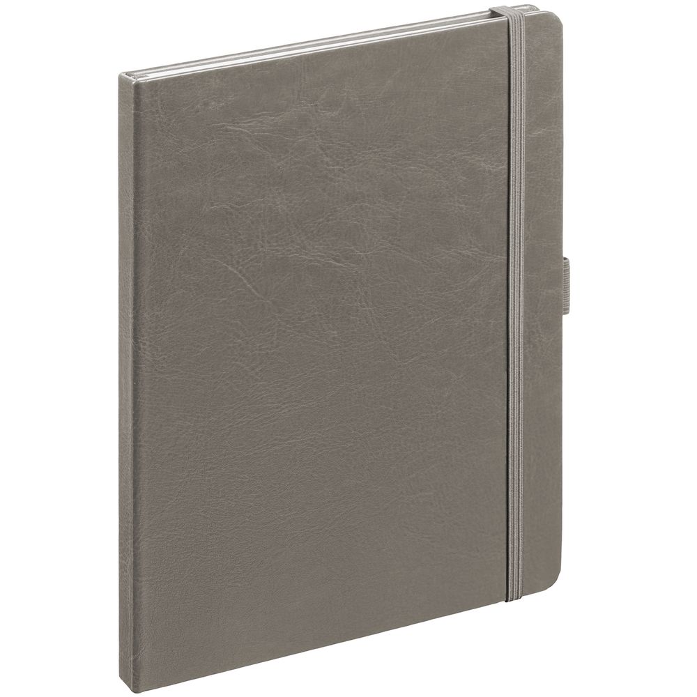 Еженедельник в твердой обложке выполнен из материала Vintage, серый СС, дополнен резинкой, петлей для ручки и ляссе серого цвета.