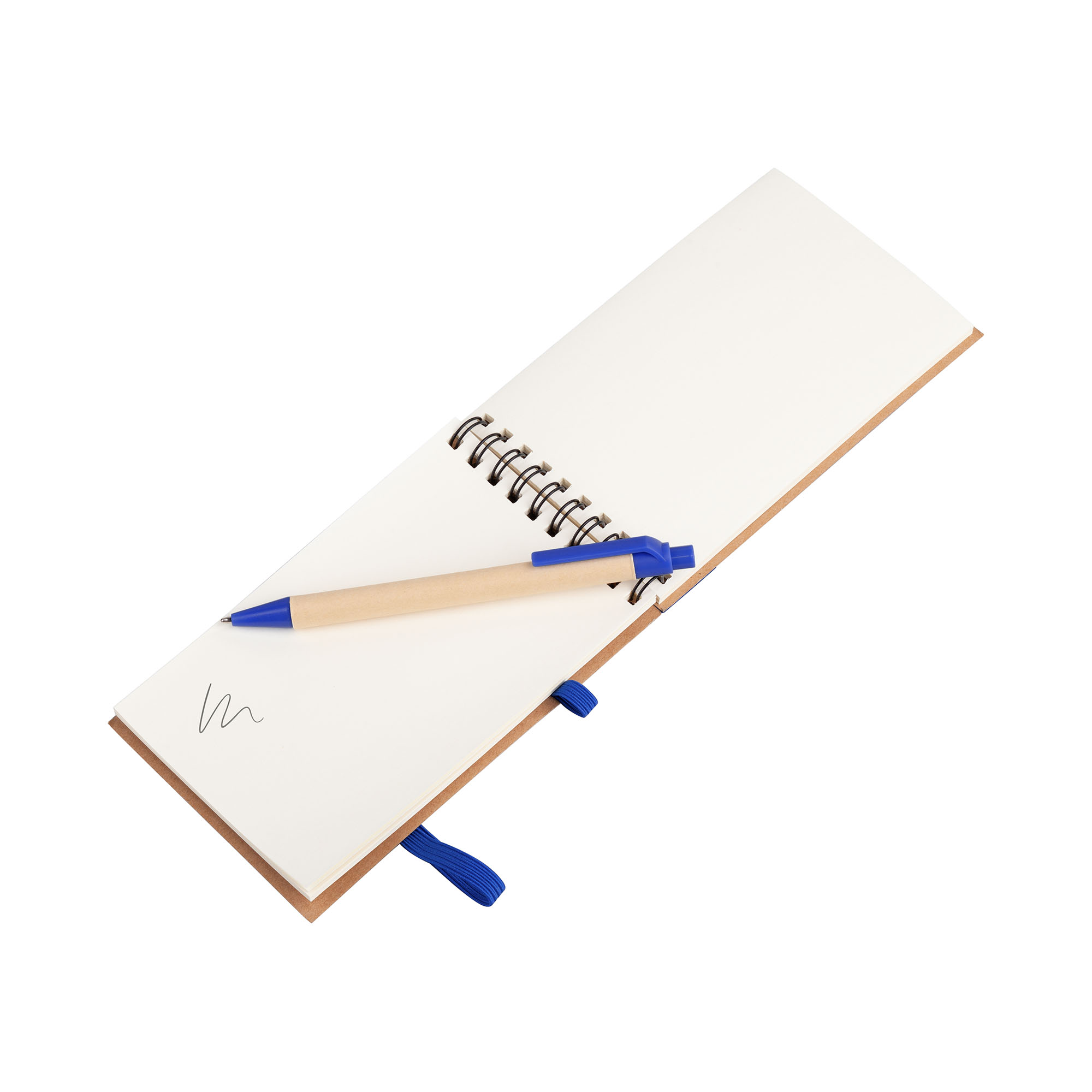 Блокнот - переработанный картон, ручка - переработанный пластик, паста черного цвета, 70 листов, без разлиновки -