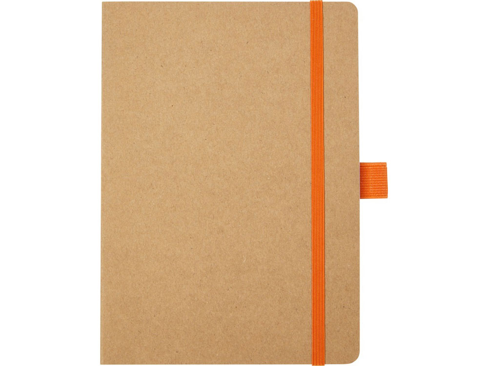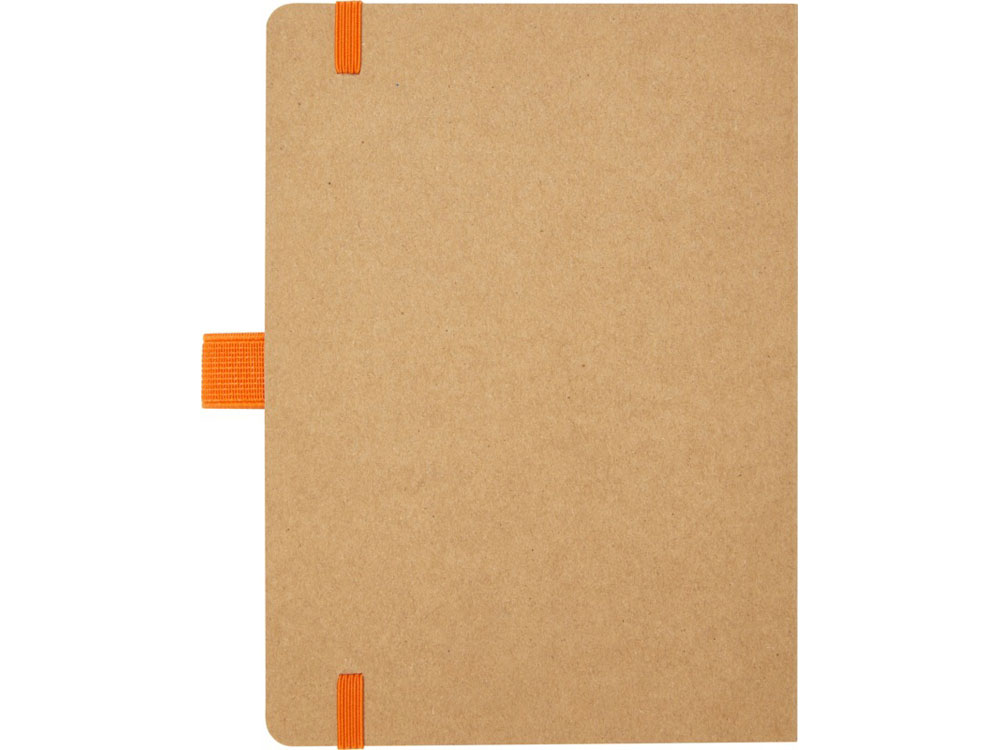 Блокнот формата из линованной переработанной бумаги (70 г/м²) с закругленными углами, цветной резинкой и петлей для ручки, соответствующей 107384 цветам ручки.