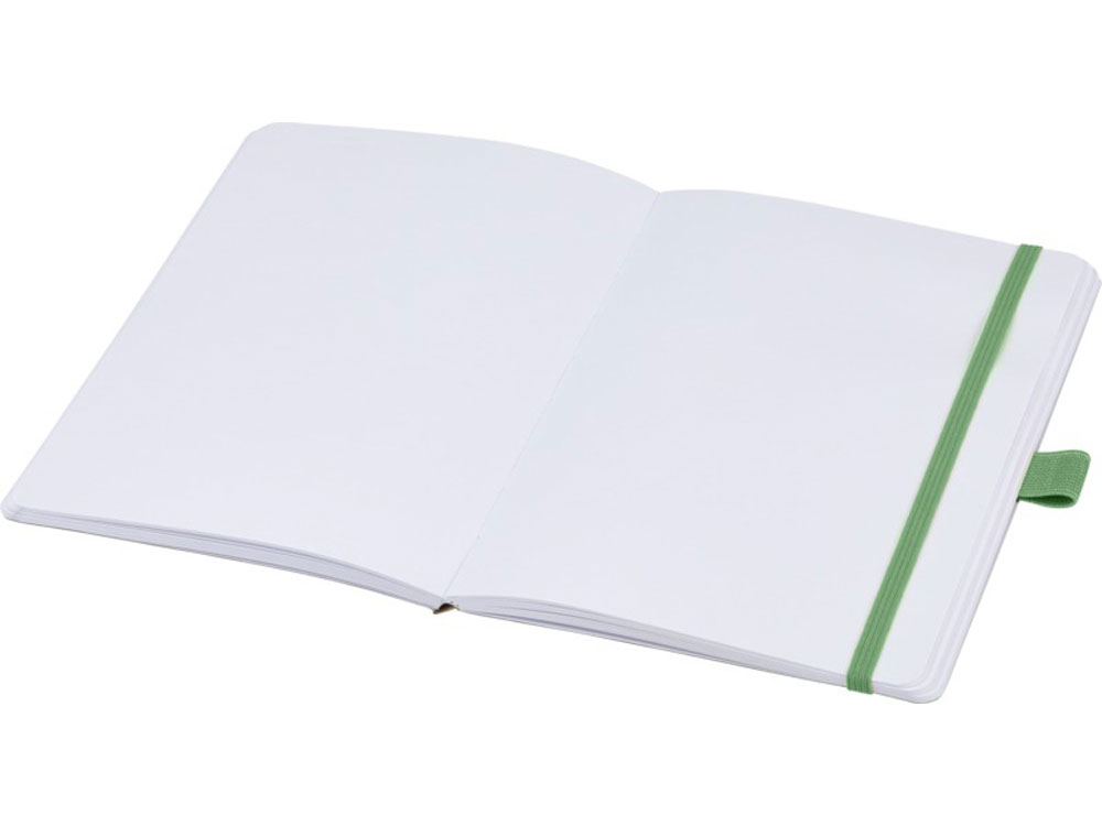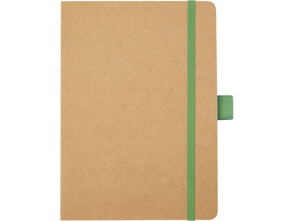 Блокнот формата из линованной переработанной бумаги (70 г/м²) с закругленными углами, цветной резинкой и петлей для ручки, соответствующей 107384 цветам ручки. -