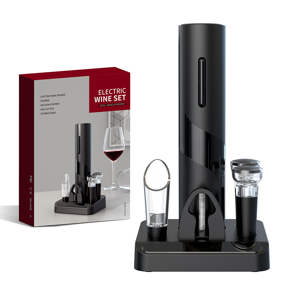 Винный набор Бургундия - отличный подарок! Все, что вам нужно для подачи ваших любимых вин, собрано в этом наборе. Набор включает в себя: - электрический штопор (работает от батареек типа АА, в комплект не входят) - резак для срезания фольги - аэратор (служит для аэрации и насыщения напитка кислородом) - две пробки (для закупоривания открытой бутылки) - специальная подставка-органайзер.- Виды нанесений: Тампопечать большая, УФ-печать А2