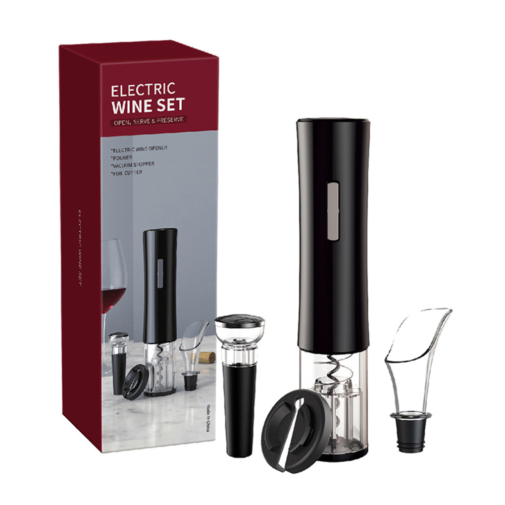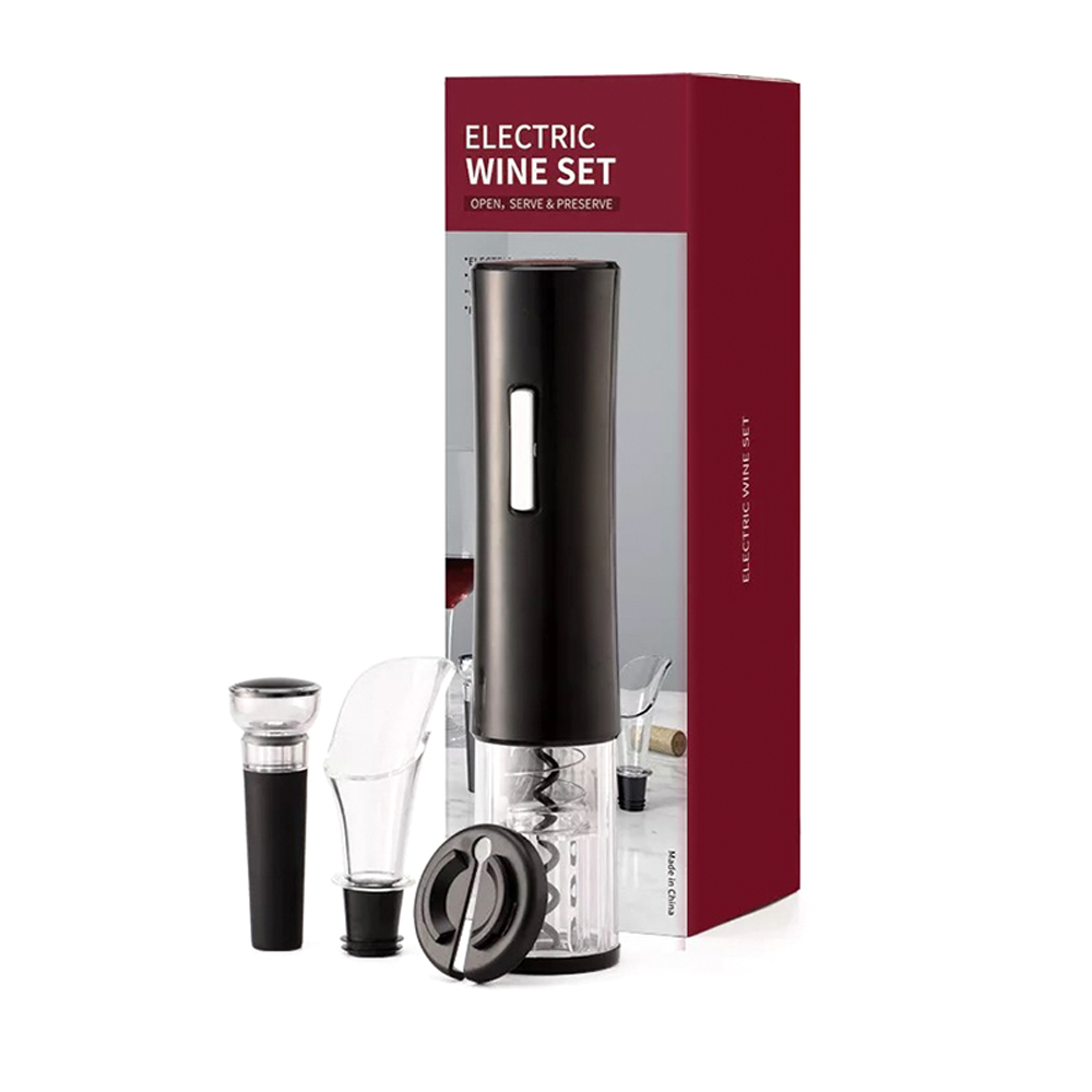Винный набор - это оригинальный набор для истинных ценителей вина! Отличный подарок по любому случаю. Жизнь полна изысканных моментов. Набор включает в себя: - электрический штопор (работает от батареек типа АА, в комплект не входят) - резак для срезания фольги - аэратор (служит для аэрации и насыщения напитка кислородом) - пробка (для закупоривания открытой бутылки).- Виды нанесений: Тампопечать большая, УФ-печать А2, УФ-Лак, УФ-Цвет+Лак