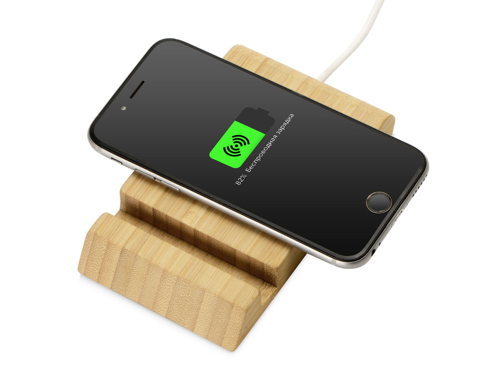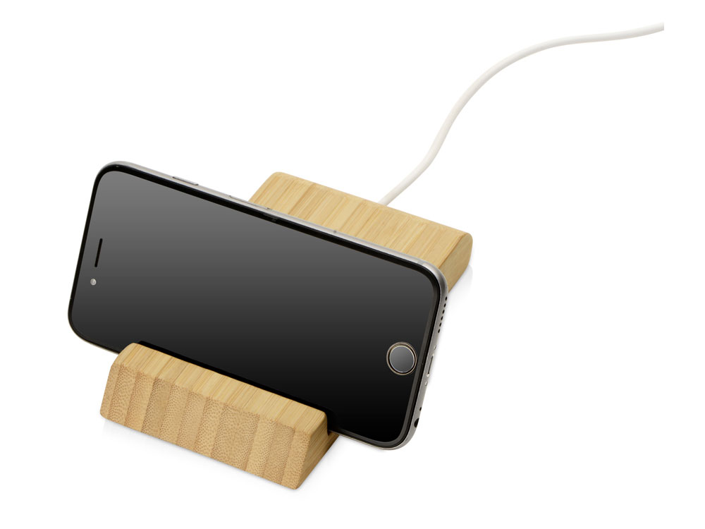 Беспроводное зарядное устройство Jetty в корпусе из натурального бамбука поддерживает функцию быстрой зарядки Qi-совместимых моделей смартфонов. Также устройство можно использовать как подставку для смартфона.