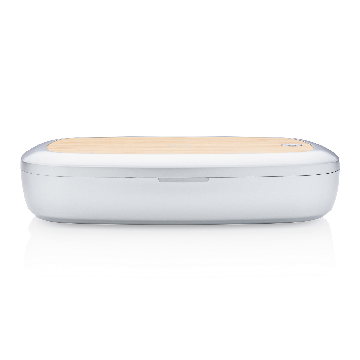 Многофункциональный стерилизатор UV-C, убивающий до 99,9% бактерий, находящихся внутри устройства. Просто поместите в него наушники, украшения, часы и защитную маску, чтобы стерилизовать их при помощи технологии UV-C. Вы можете выполнить быструю очистку за 90 секунд или полную за 5 минут. Лампы UV-C нетоксичны и сделаны без использования ртути, в отличие от многих УФ-ламп на рынке. Кроме того, функция стерилизации работает только при закрытой крышке и автоматически отключается при открывании устройства, что защитит вас от воздействия света UV-C. Лампы рассчитаны на 10 000 часов использования. В верхней части устройства расположена док-станция с функцией беспроводной зарядки, выполненная из натурального бамбука. В комплект входит 100-сантиметровый кабель TPE (без ПВХ). Вход: 5 В / 1,5 А; Выход: 5 / 1А - 5 Вт. Длина волны UV-C 270-280 нм.