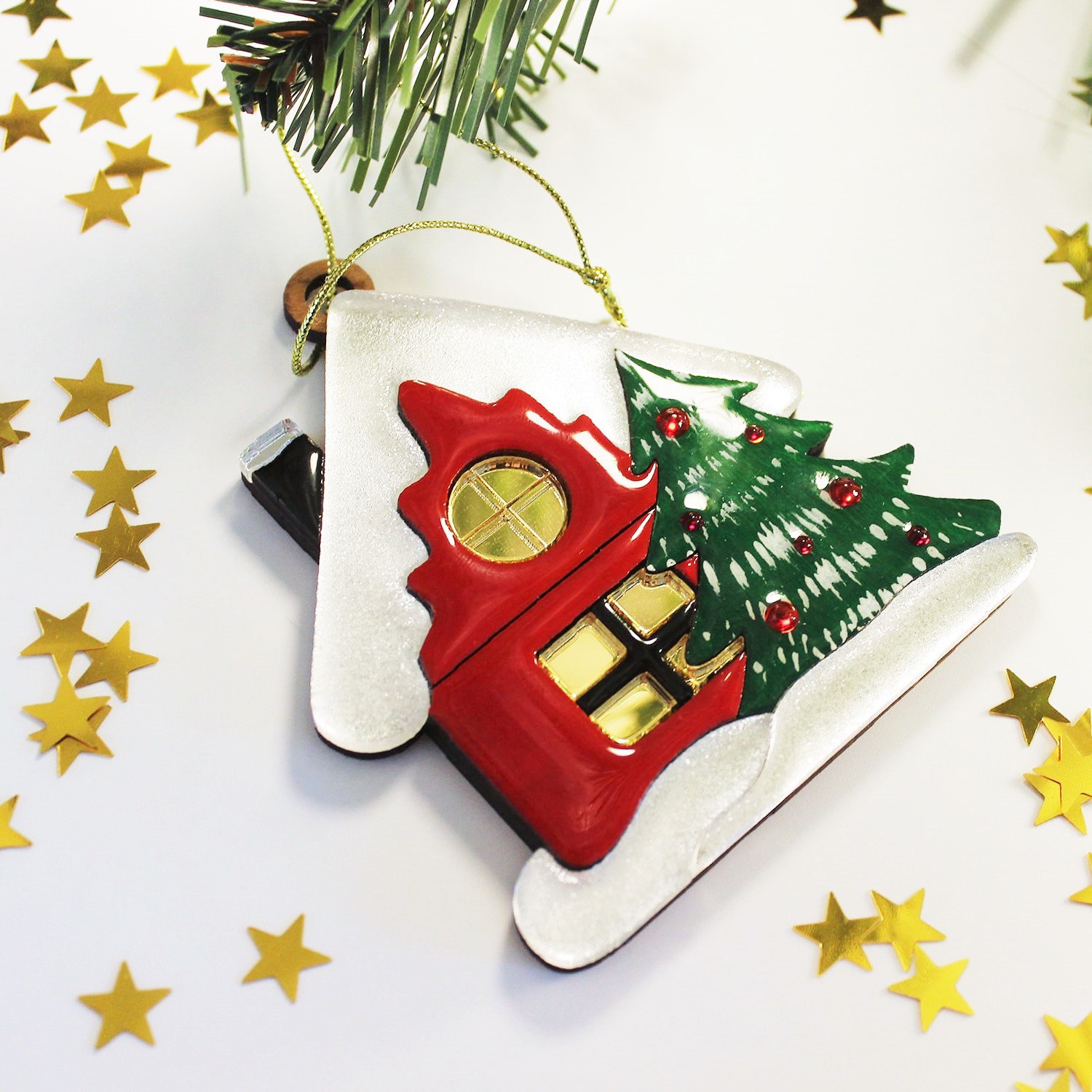 Ёлочная игрушка Домик (красный)