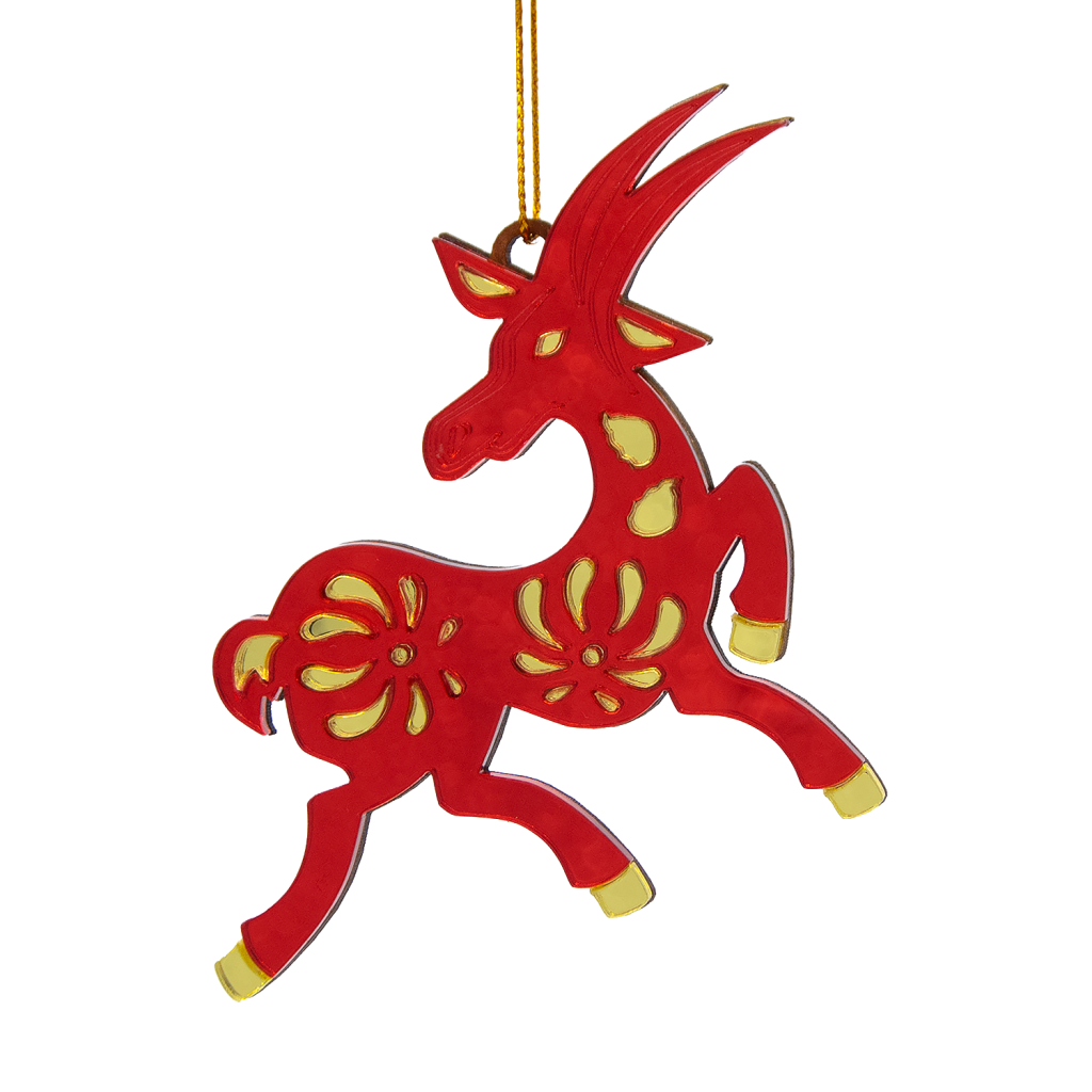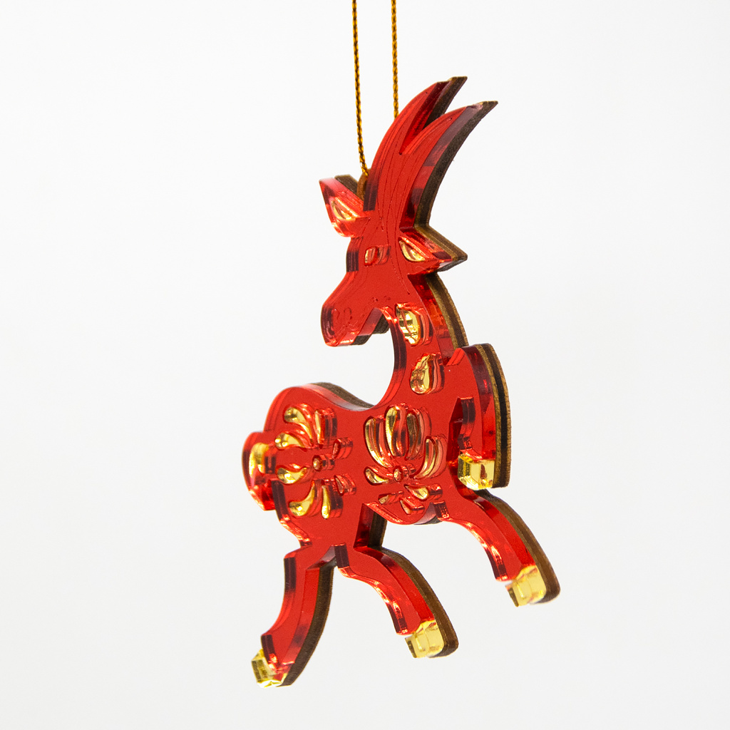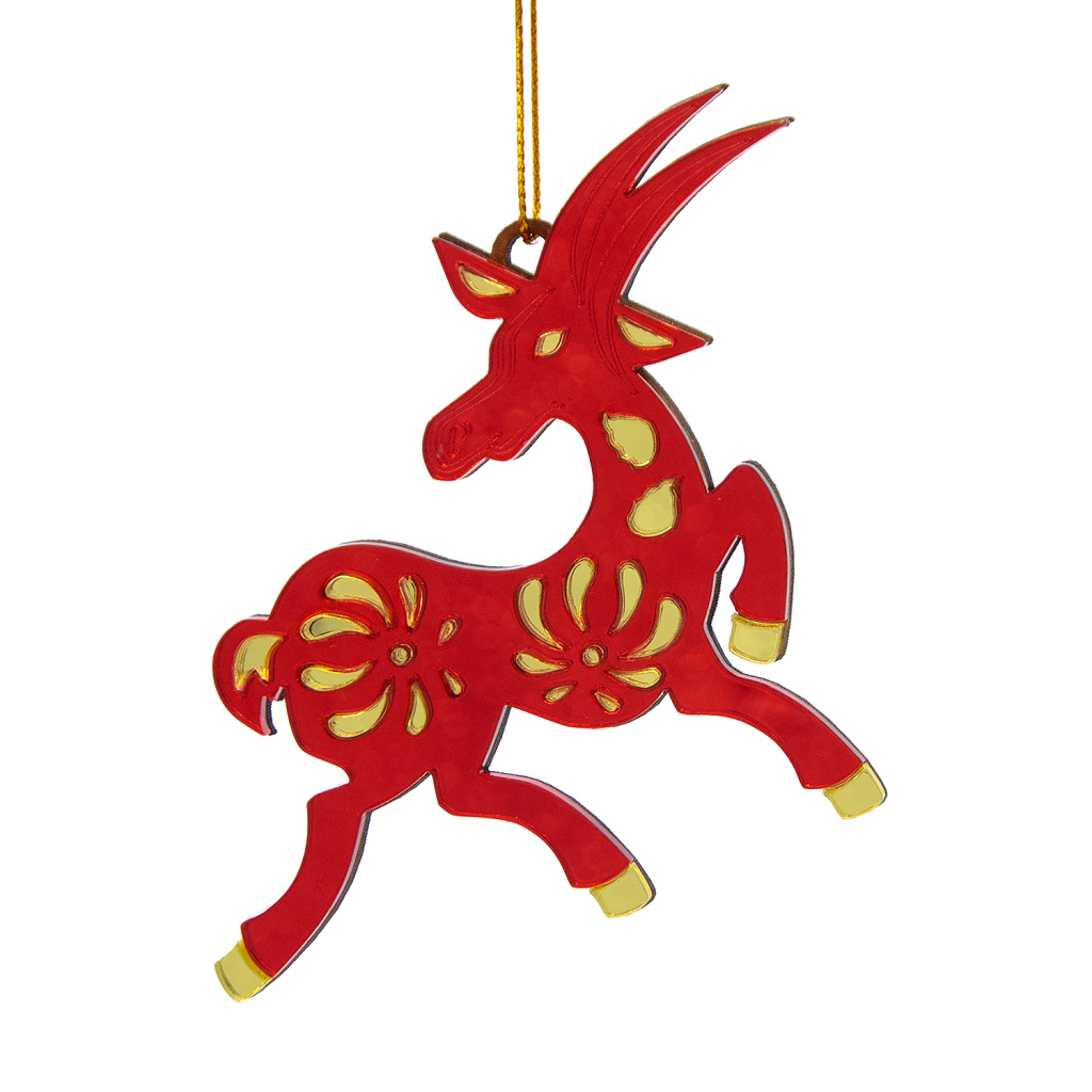 Ёлочная игрушка Коза (красный с золотом)