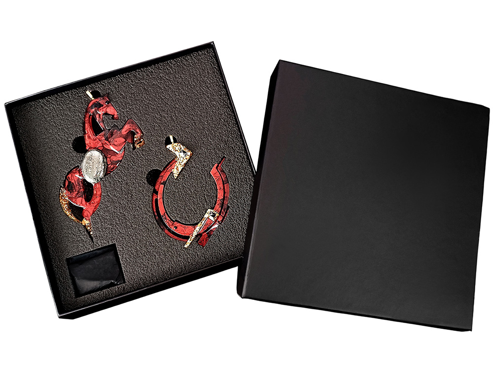 Изысканный дуэт талисманов, наполненных символизмом и энергией в духе Василия Кандинского. В набор входят две уникальные фигурки: лошадь и подкова, созданные в оттенке Гранатовый шёлк — насыщенном, благородном бордо с лёгким шелковистым отблеском, напоминающем вечернее праздничное платье.