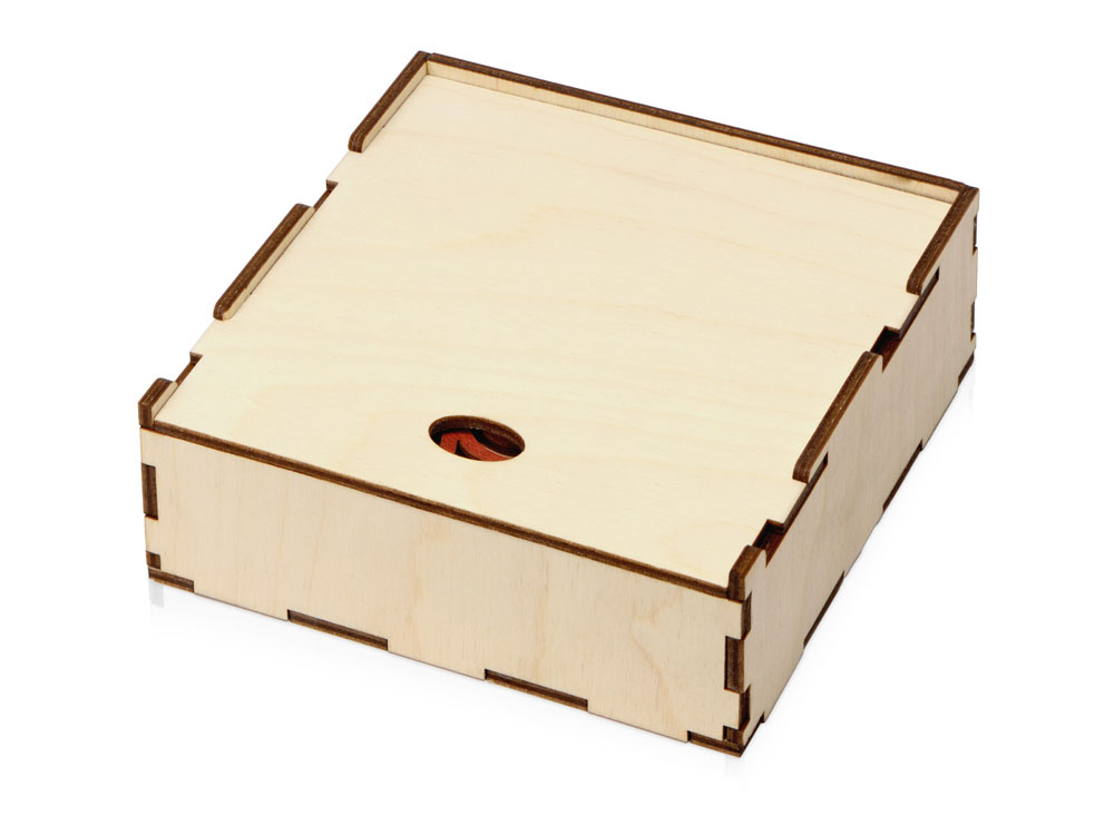 Набор из пяти новогодних подвесок упакован в коробку-футляр из березовой фанеры. Брендировать можно как сами игрушки, так и упаковку, причем помимо традиционной для фанеры гравировки предусмотрена возможность использования и других методов нанесения. Подвески будут напоминать о вашем бренде каждое рождество, создавая праздничное настроение, а футляр в дальнейшем может использоваться в качестве шкатулки для мелочей или для рукоделия. -