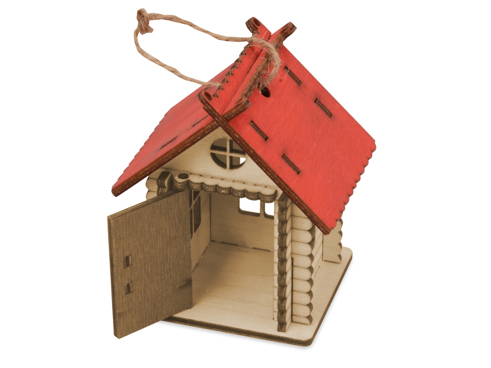 Небольшая елочная игрушка в виде лесной избушки. Дверца избушки открывается, внутрь можно положить небольшой сувенир, конфету или маленький светодиодный фонарик. Избушка с небольшим светящимся огоньком отлично украсит ваше новогоднее дерево, а несколько таких игрушек на елке с легкостью заменят новогоднюю гирлянду. -