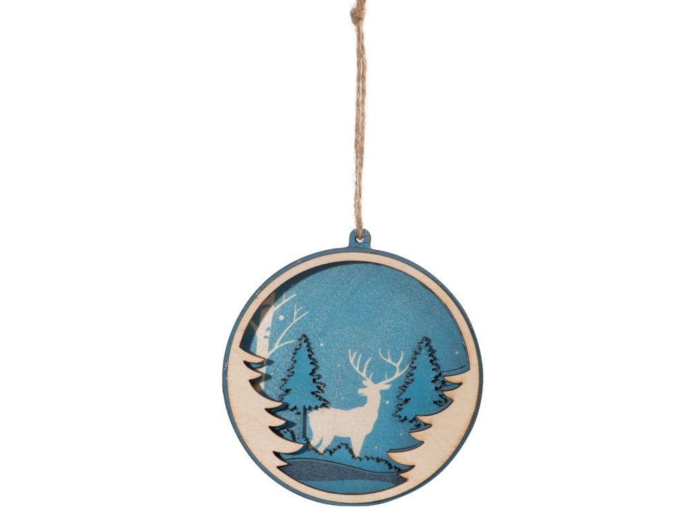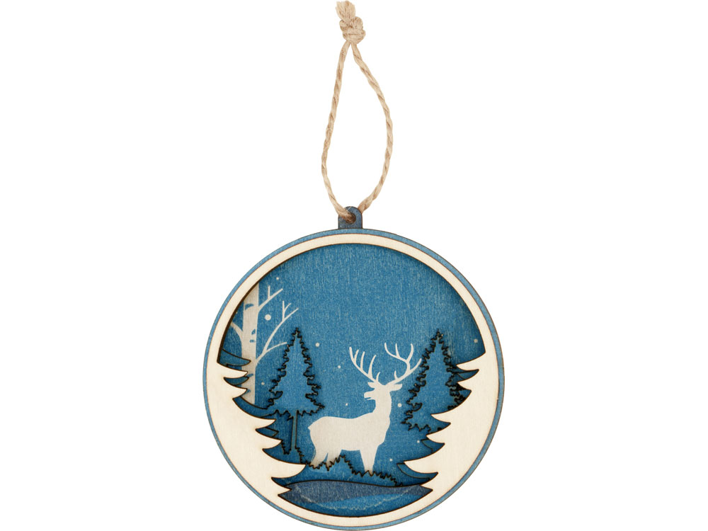 Игрушка выполнена из трех слоев фанеры и прекрасно подходит для того, чтобы украсить новогодний набор, подарок либо стать самостоятельным небольшим памятным презентом. Игрушка имеет свой рельеф: приглядитесь, и вы заметите, что фигуры пейзажа находятся на разных слоях фанеры, что придает изображению объемность. -