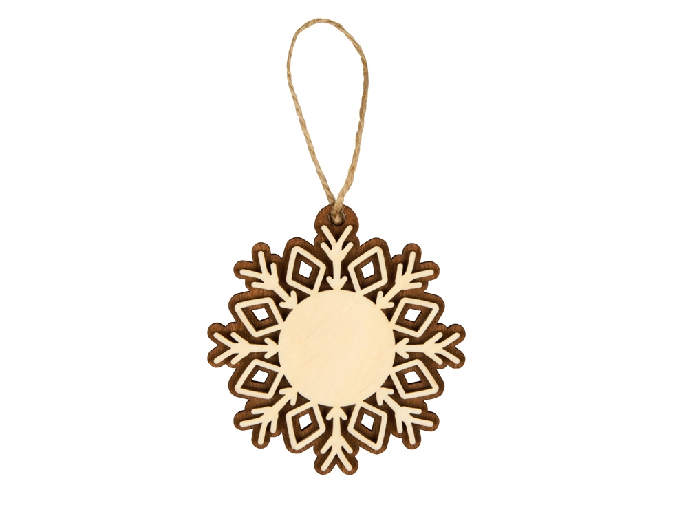 Оригинальное елочное украшение в виде снежинки. Подвеска выполнена из березовой фанеры и тонирована в коричневый цвет. Это елочное украшение – отличный вариант для экоелки. Не хотите использовать елочные игрушки из пластика или стекла? Деревянные сувениры из нашего каталога станут отличным украшением, которые создадут атмосферу уюта в вашем доме. -