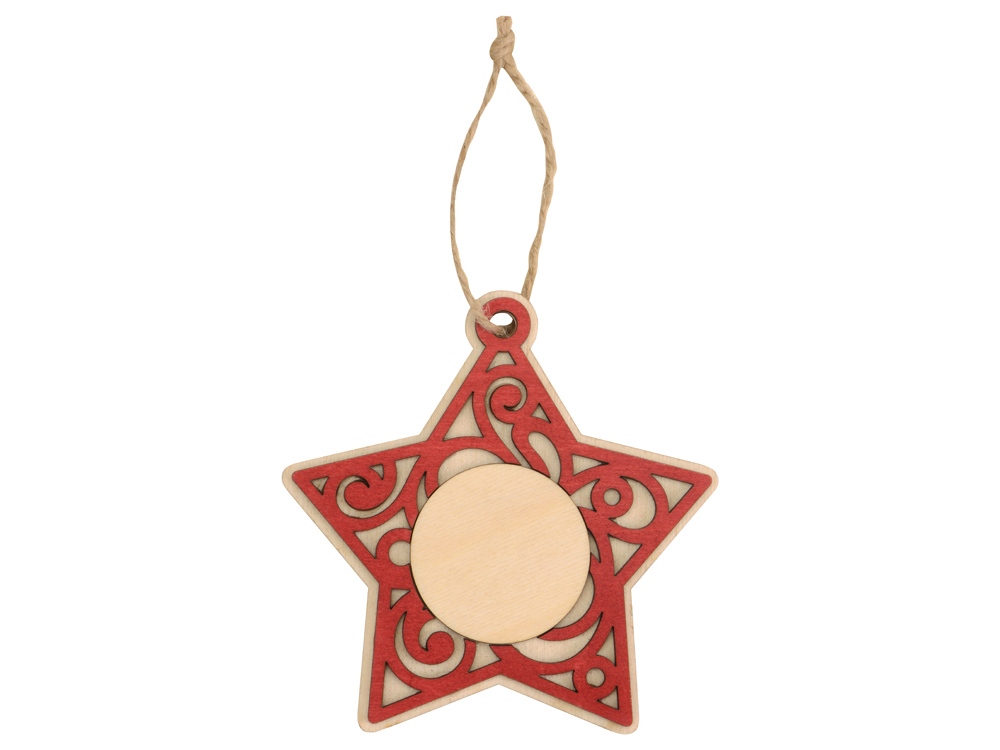 Оригинальная елочная подвеска в виде звездочки станет прекрасным сувениром к новогодним праздникам, который будет напоминать о вас каждый декабрь во время украшения елки. Ажурная подвеска выполнена из березовой фанеры и тонирована в красный цвет, а также имеет поле для нанесения по центру, которое осталось лишь дополнить логотипом, надписью или изображением. -