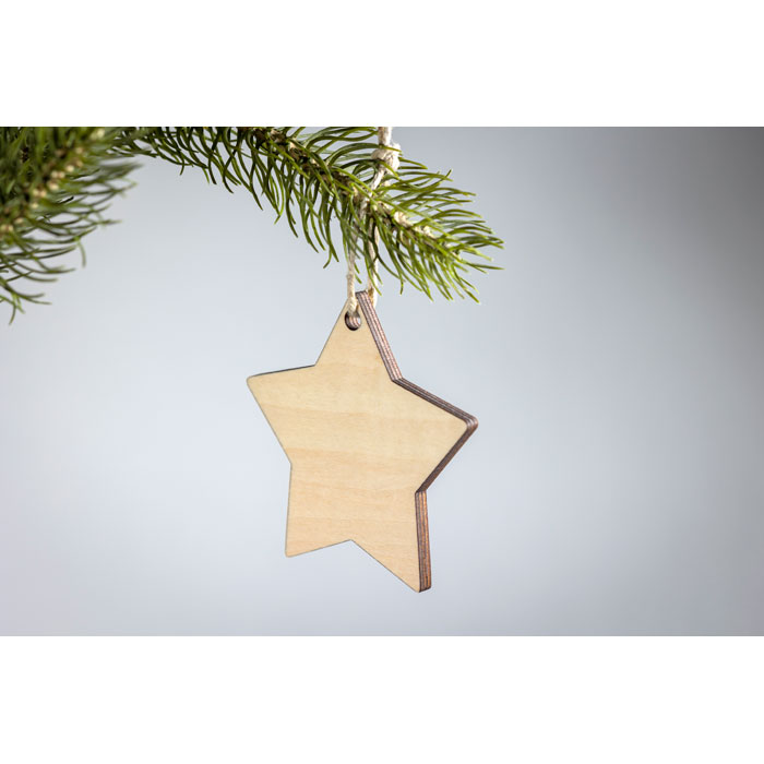 Рождественское украшение из фанеры для сублимации на джутовой тесьме в форме звезды. Нанесение белым цветом не возможно. -