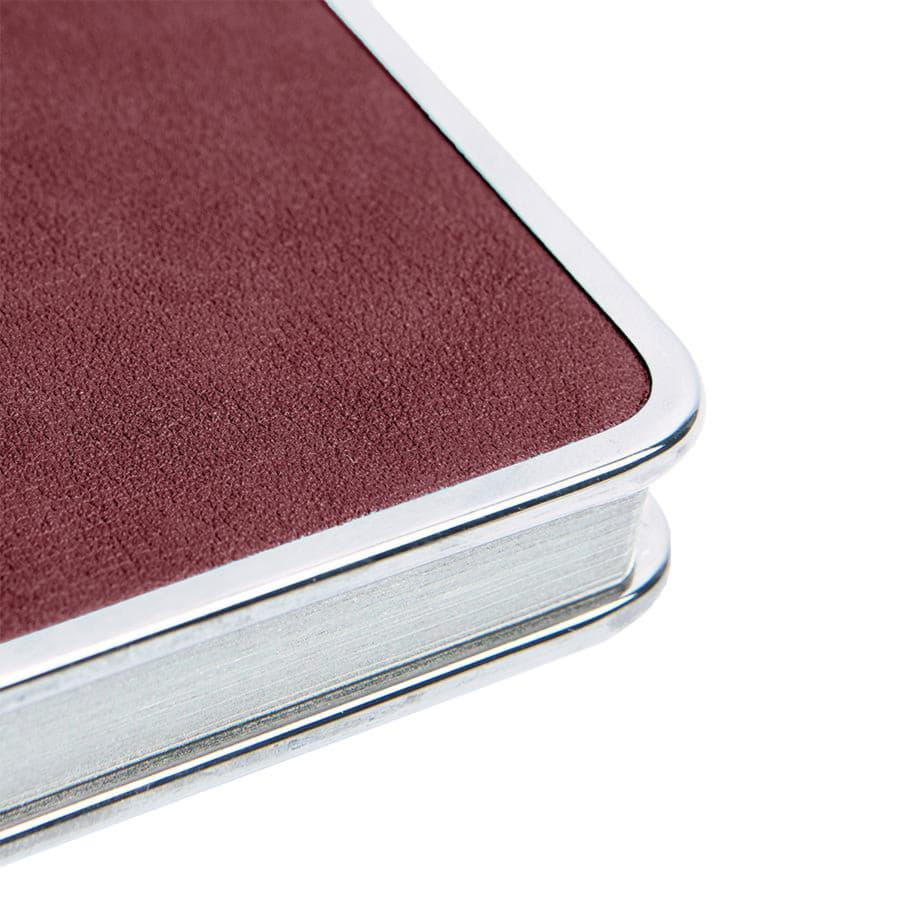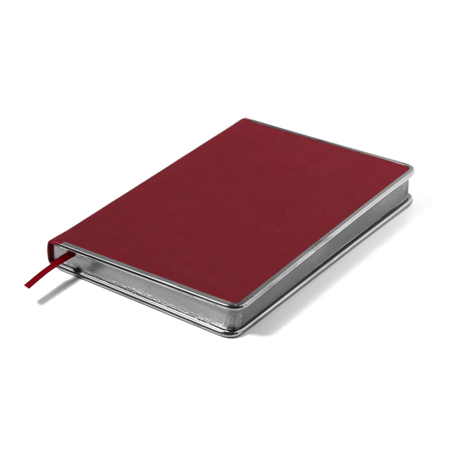 Цвет обложки, близкий к пантону 202 CРазмер 145*205 ммПереплет твердыйМеталлическая рамка по периметру, цвет gun metalОбложка термоактивный PUБлок недатированный, в линейкуСкругленные углы, двухцветная печатьБумага кремовая, плотность 70 г м2Форзац нахзац кремовые272 страницыОбрез в цвет металлической рамкиКаптал и ляссе в цвет обложкиУпаковка крафтовый сливбоксВ данный момент происходит смена справочной части блока. Внешний вид изделия остается без изменений. -