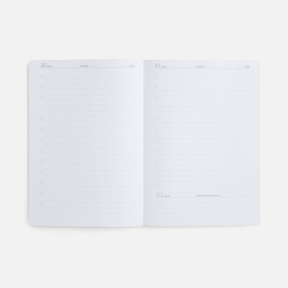 Ежедневник с полутвердой обложкой выполнен из материала Nice Touch, синий НН, и дополнен резинкой шириной 1 см с металлическим шильдом и ляссе синего цвета.