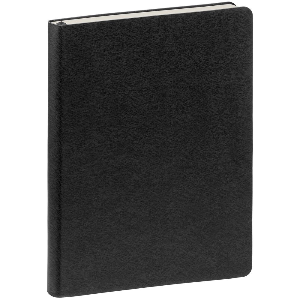 Ежедневник с гибкой обложкой, выполнен из материала Latte, черный, дополнен ляссе в цвет обложки.