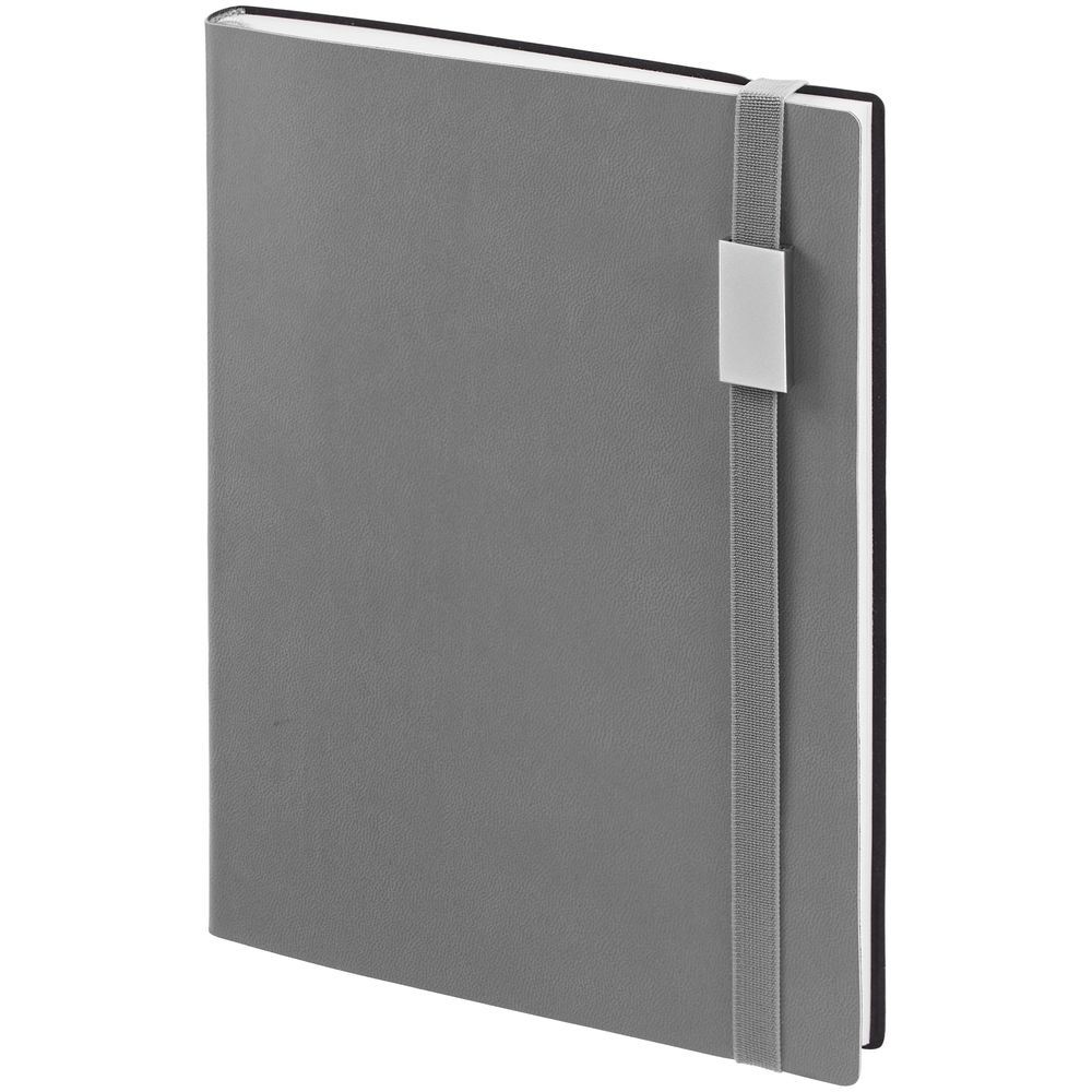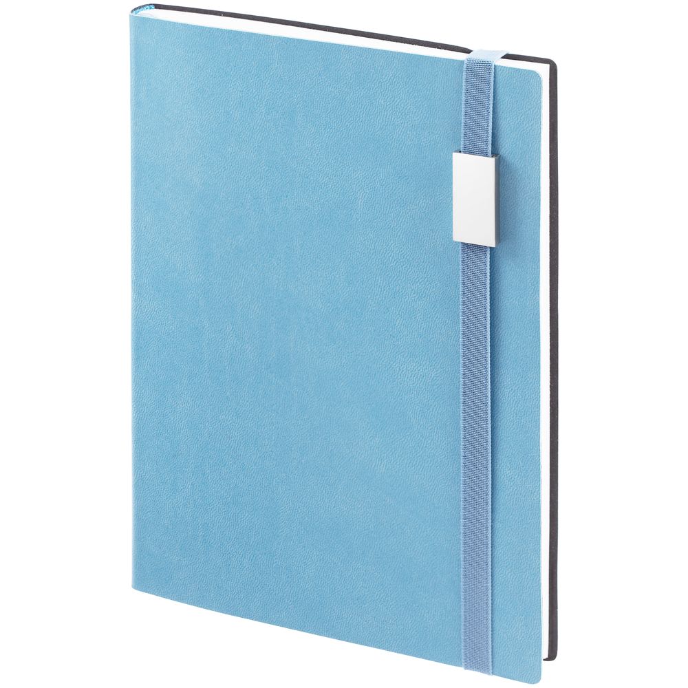 Ежедневник с гибкой обложкой, выполнен из материала Latte, красный PP, дополнен резинкой шириной 1 см с металлическим шильдом, капталом и ляссе красного цвета.