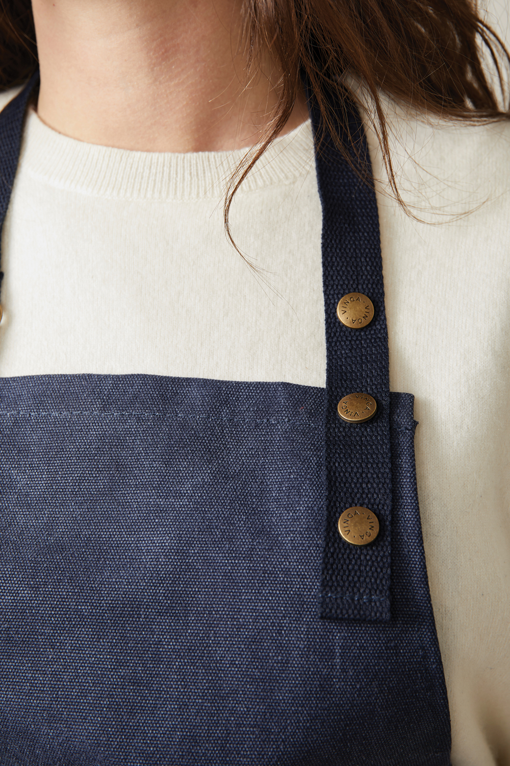 Практичный и удобный фартук в минималистичном дизайне. На 40% состоит из переработанного полиэстера и на 60% из переработанного хлопка. Предусмотрен большой передний карман и петля для кухонных щипцов или полотенца. Благодаря регулируемому ремешку и завязкам подойдет на любой рост и размер.