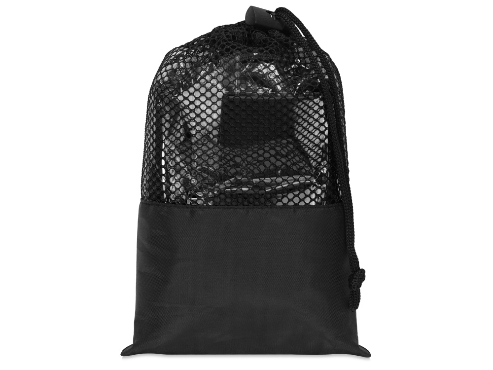 Набор упакован в тканевый мешочек на шнурке, а сквозь сетчатую вставку можно рассмотреть содержимое, чтобы точно взять все необходимое для тренировки с собой.