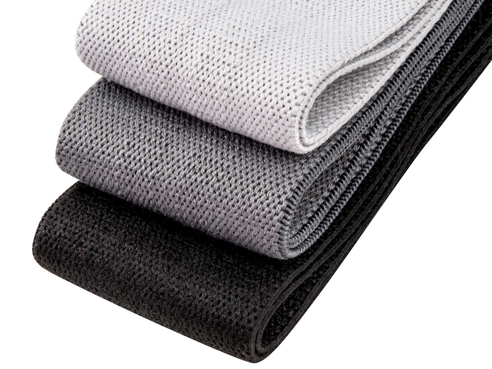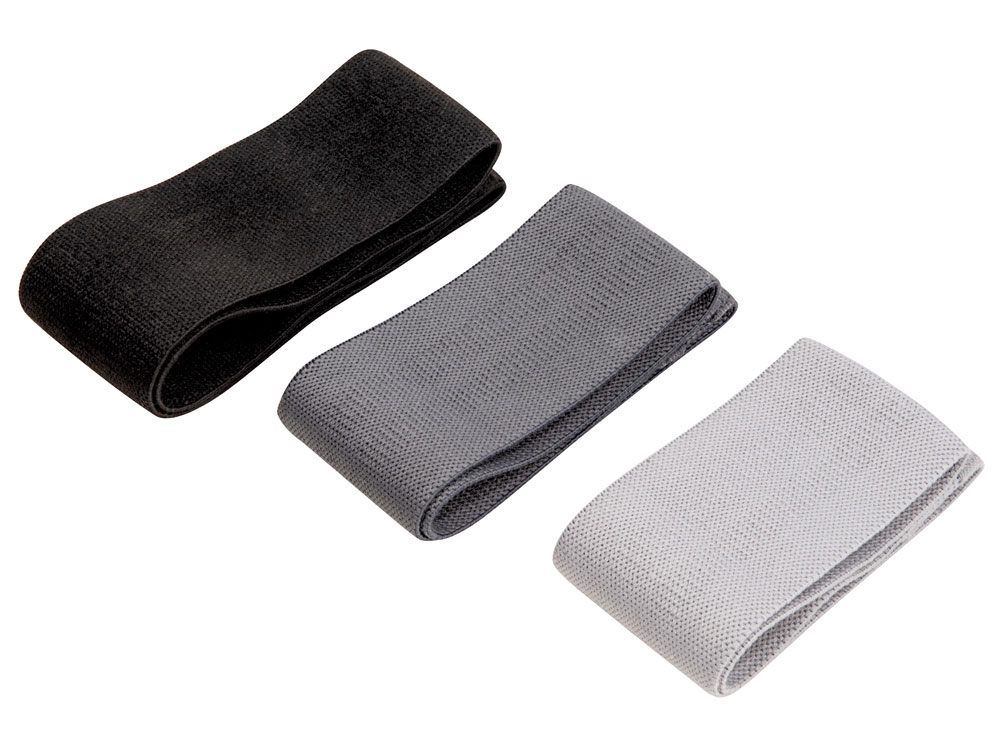 Резинки выполнены из ткани, что обеспечивает не только долговечность, но и позволяет стирать их при температуре 20 градусов как в стиральной машине, так и на руках. Ширина резинок обеспечивает комфорт во время занятий, чем шире резинка — тем меньше она скручивается. С внутренней стороны каждая резинка прошита силиконовой вставкой против скольжения по время тренировки.