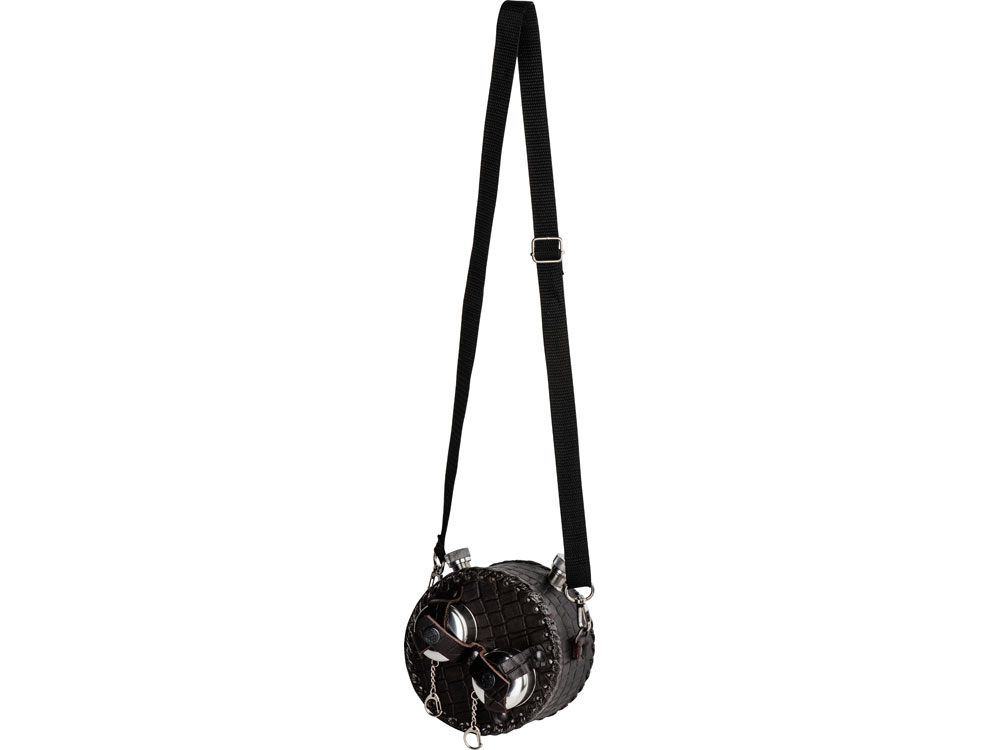 Двойная фляга из нержавеющей стали в оплетке из натуральной кожи.