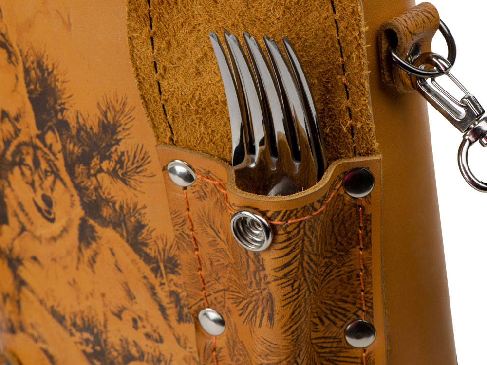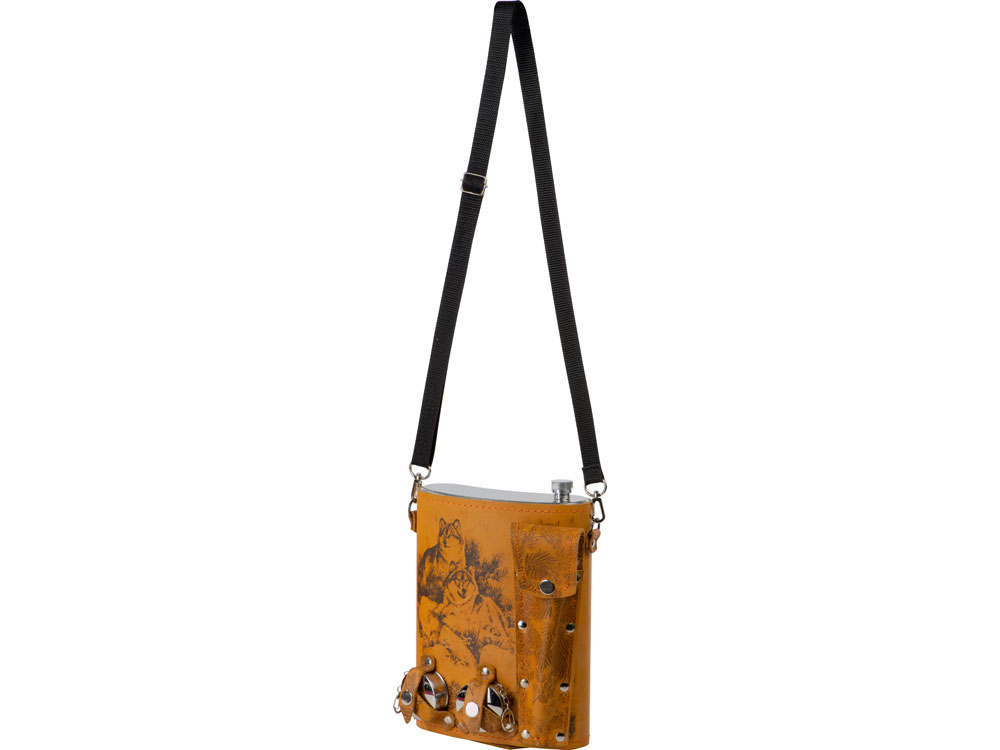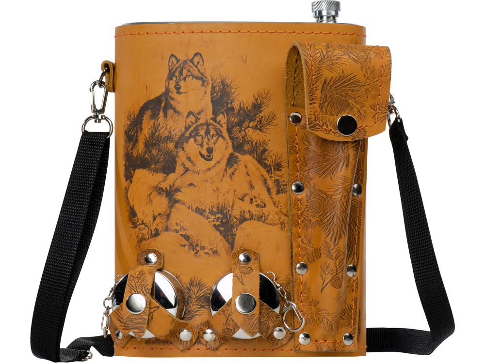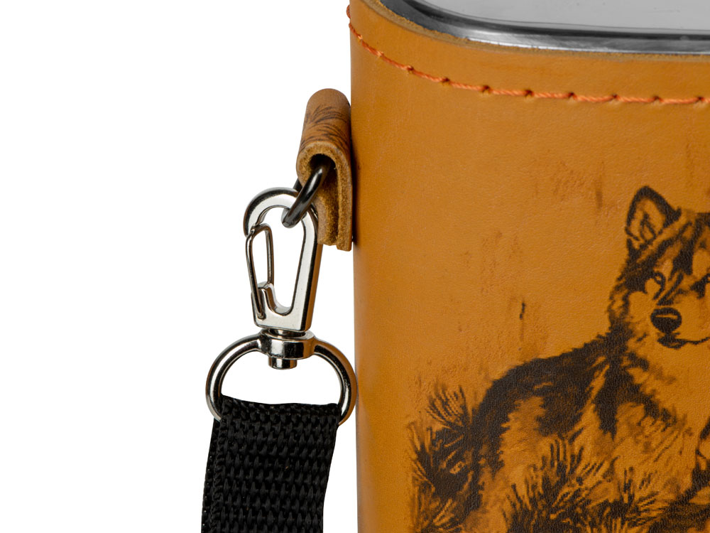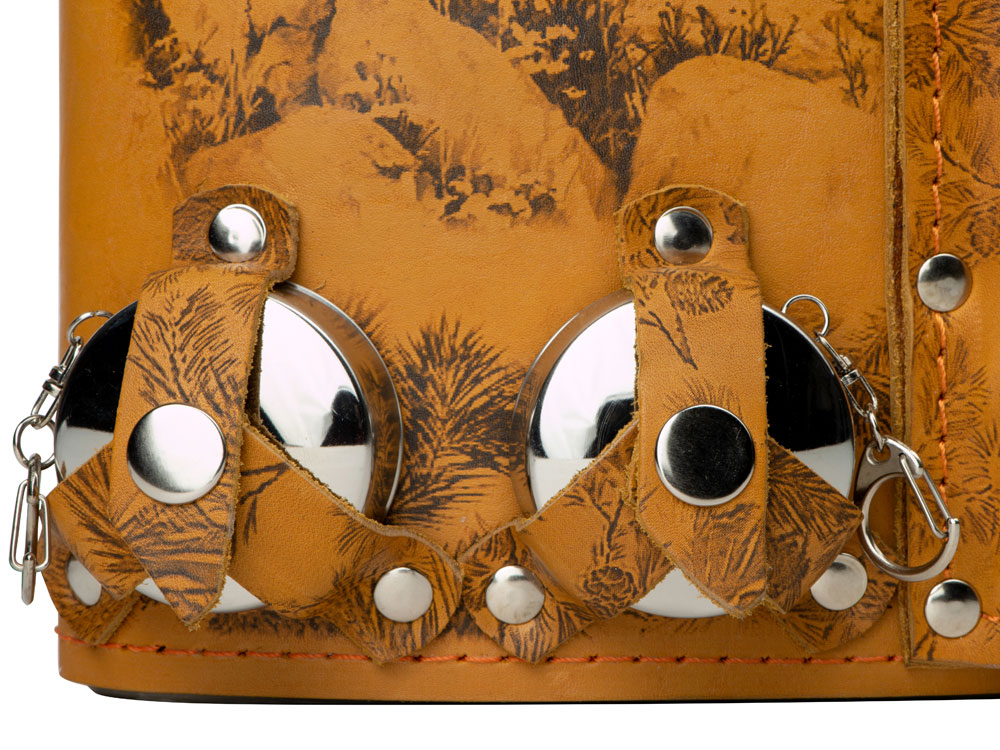 Фляга 2л в оплетке из натуральной кожи с нанесением рисунка методом художественного выжигания.