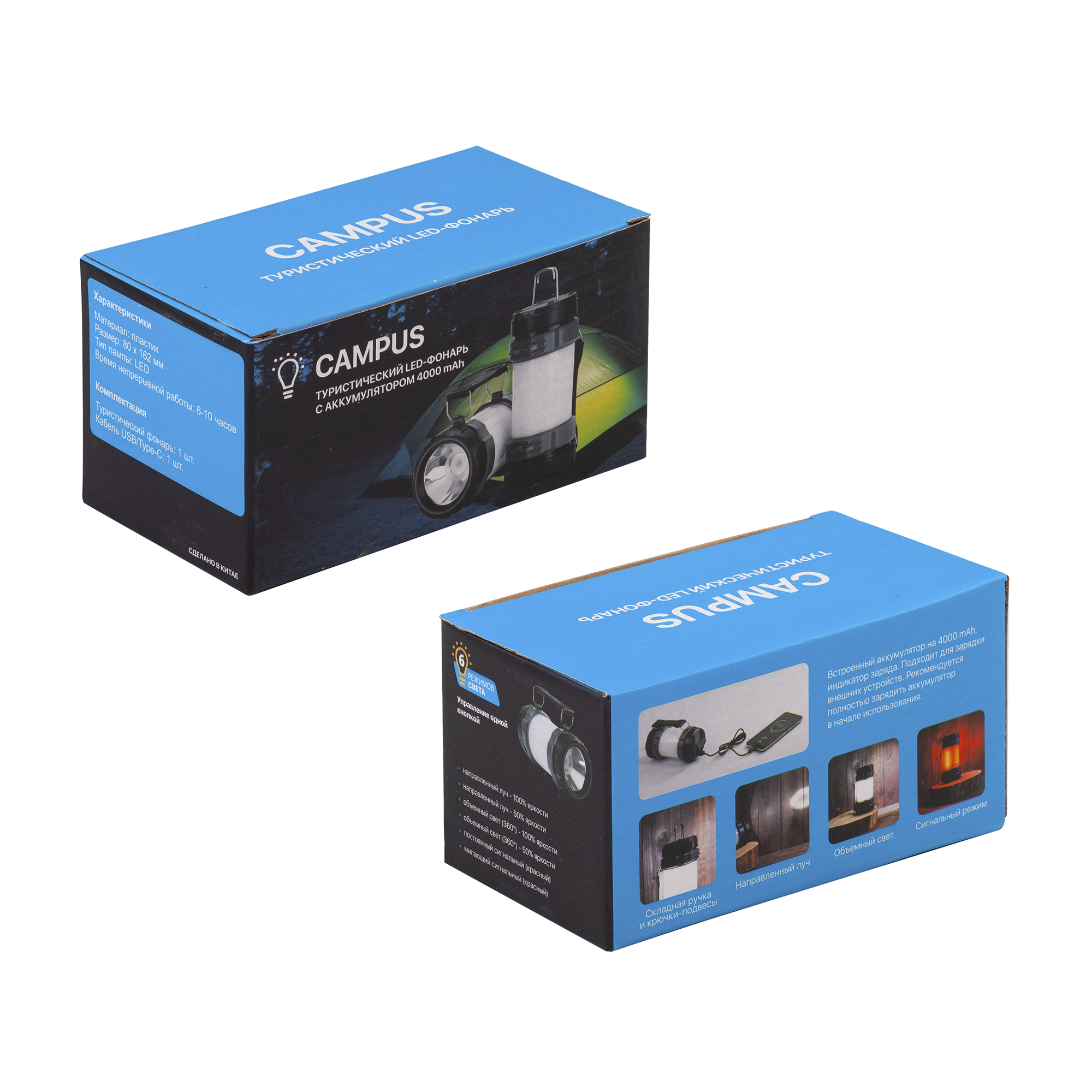 Туристический led-фонарь "Campus" с аккумулятором 4000 mAh