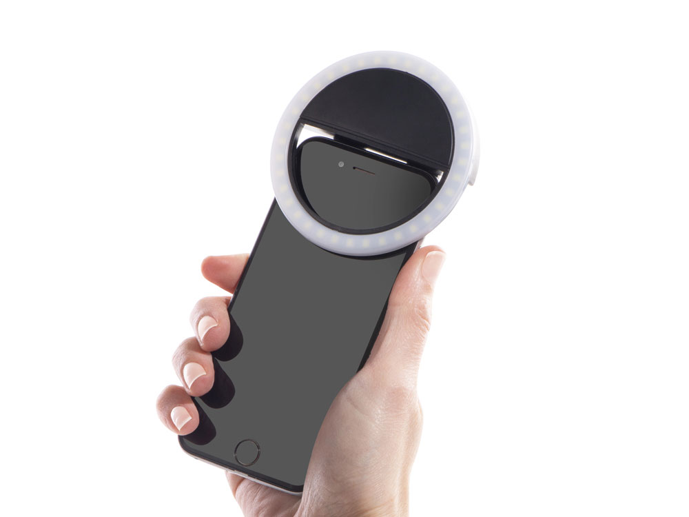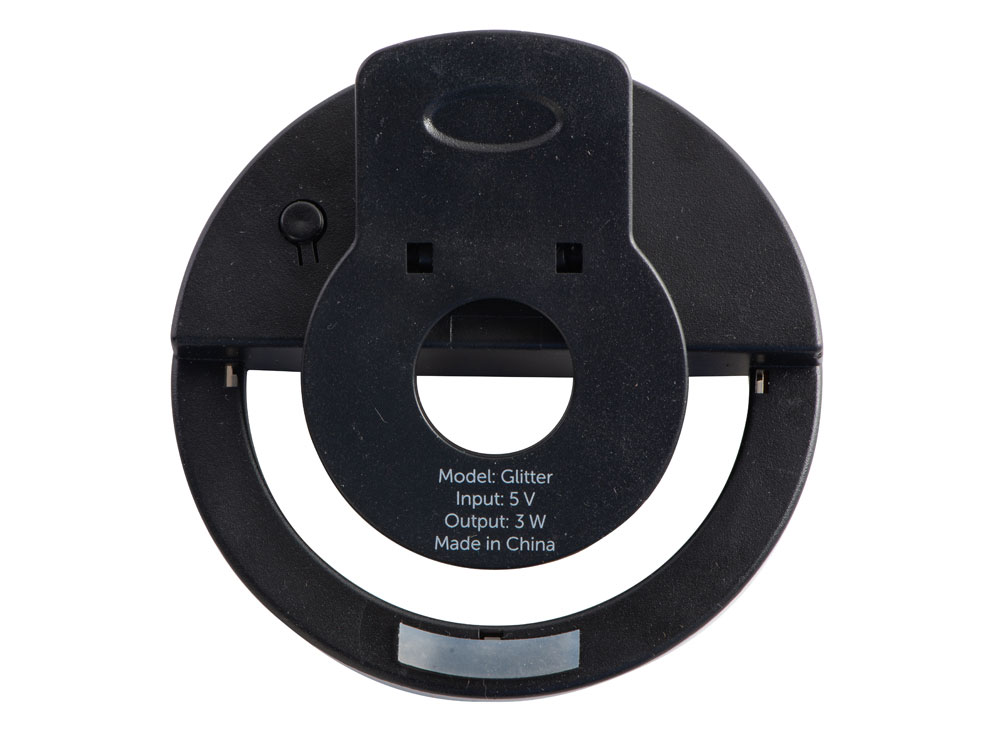 Световое кольцо Glitter делает ваши селфи- фото и видео более качественными за счет дополнительного освещения. Подсветка представлена нейтральным белым цветом от 48 светодиодов с 3 режимами яркости. Время непрерывного свечения - до 2 часов. Можно быстро зарядить от любого пауэрбэнка по micro USB. Благодаря удобной конструкции селфи-кольцо устанавливается и снимается за секунду. На корпусе имеются силиконовые защитные полоски, чтобы исключить даже малейшие повреждения экрану смартфона.