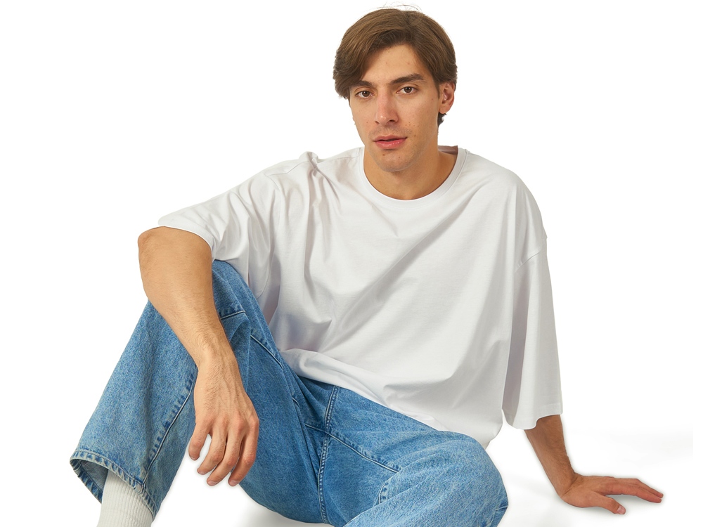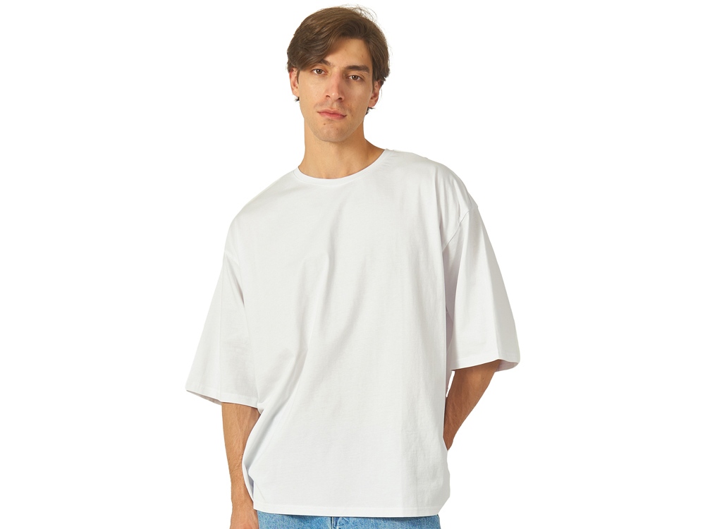 Футболка унисекс расширенного силуэта со спущенным плечом и удлиненной линией рукава. Футболка выполнена из плотного джерси 180гр. Горловина спинки дополнительно укреплена тесьмой из основной ткани. Скрытый лейбл позволит сделать акцент на брендировании клиента.