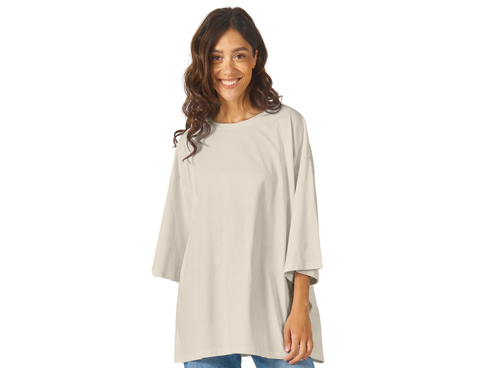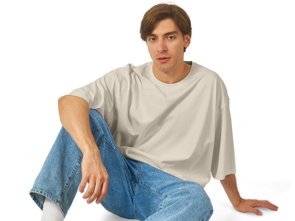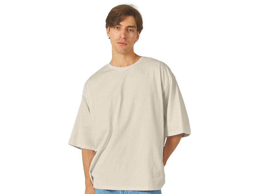 Футболка унисекс расширенного силуэта со спущенным плечом и удлиненной линией рукава. Футболка выполнена из плотного джерси 180гр. Горловина спинки дополнительно укреплена тесьмой из основной ткани. Скрытый лейбл позволит сделать акцент на брендировании клиента.