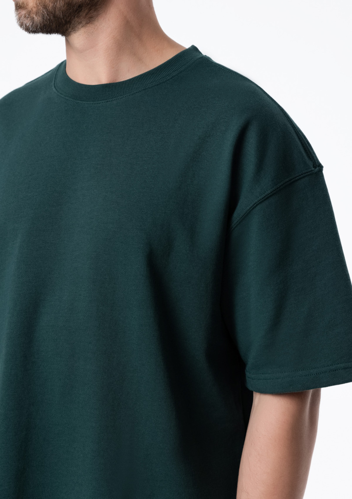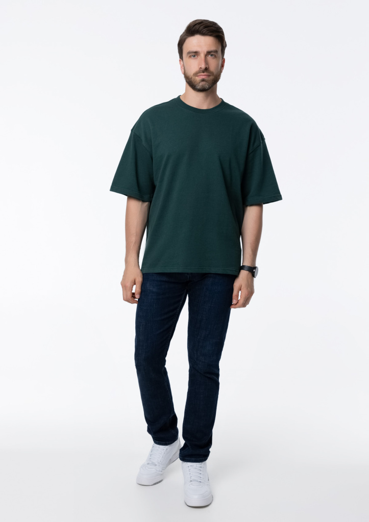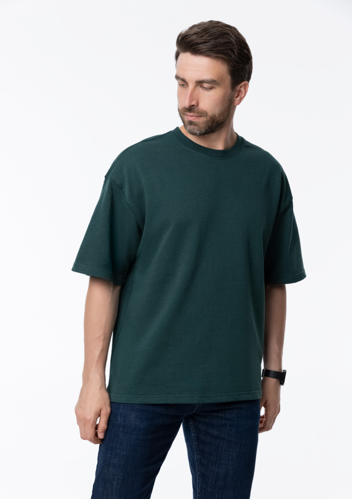 Футболка свободного кроя с округлым воротом и спущенной линией плеча. Шов горловины спинки усилен киперной лентой в тон основному цвету. Универсальная модель идеально впишется как в мужской, так и в женский гардероб.