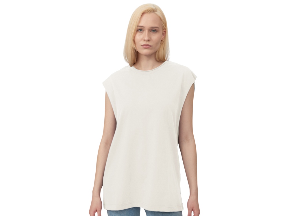Майка унисекс расширенного силуэта со спущенным плечом, выполнена из плотного джерси 180гр.