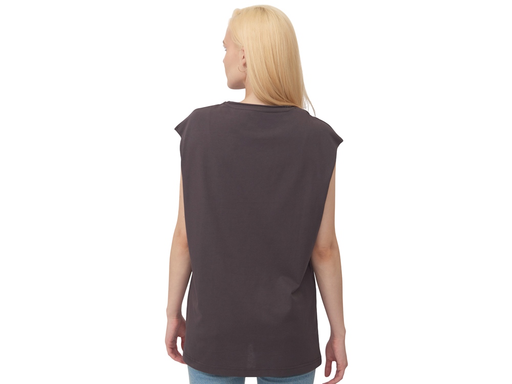 Расслабленная посадка модели и необработанные швы проймы и края горловины позволяют чувствовать себя комфортно и оставаться на волне трендов.